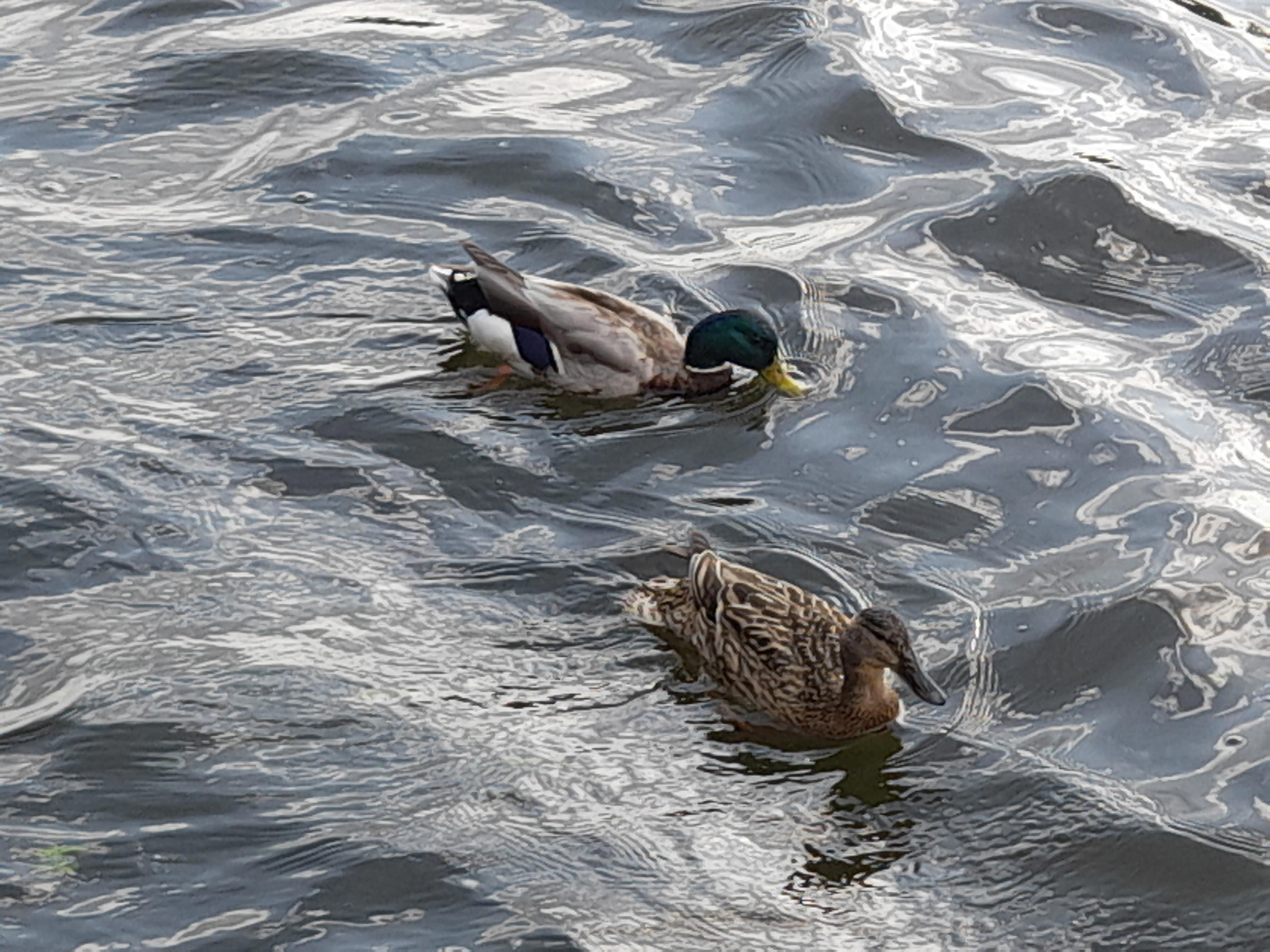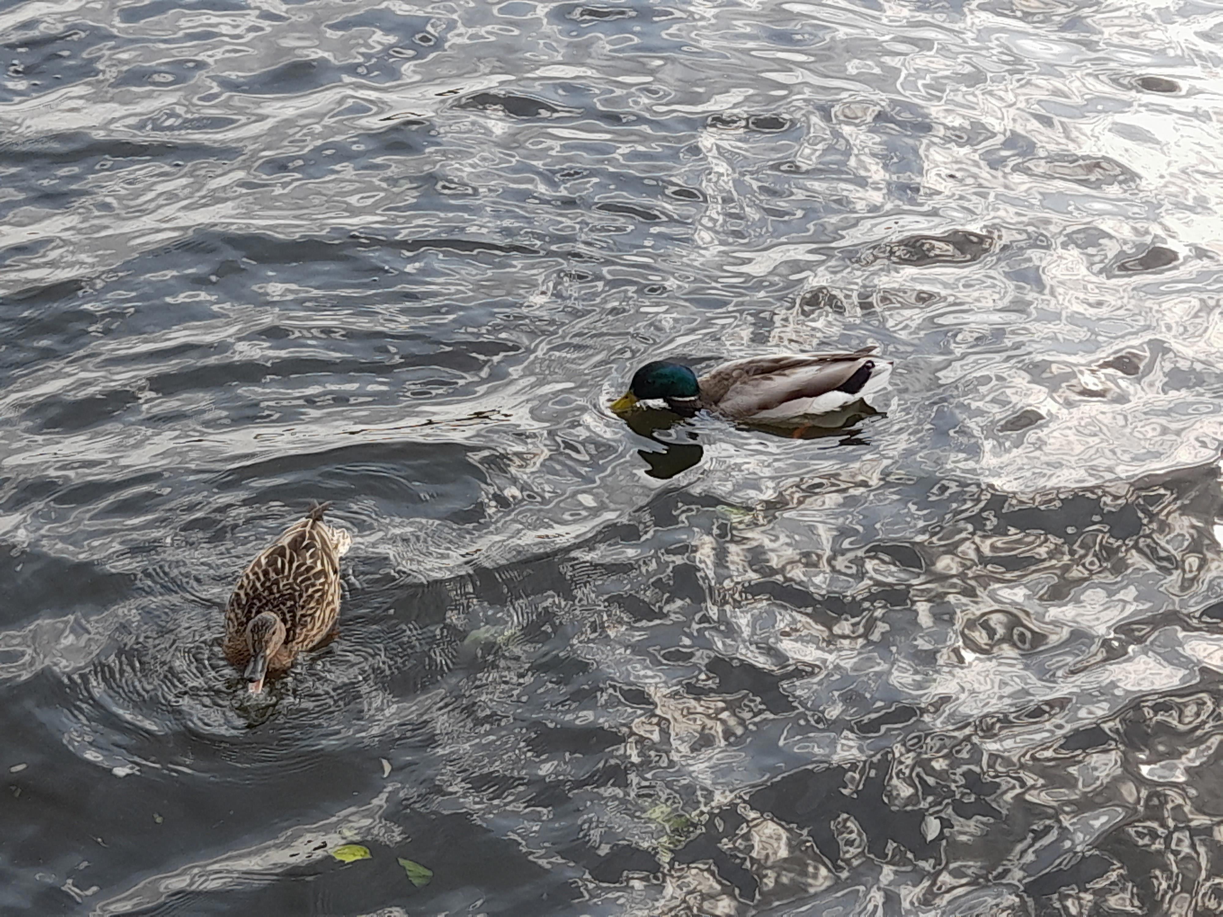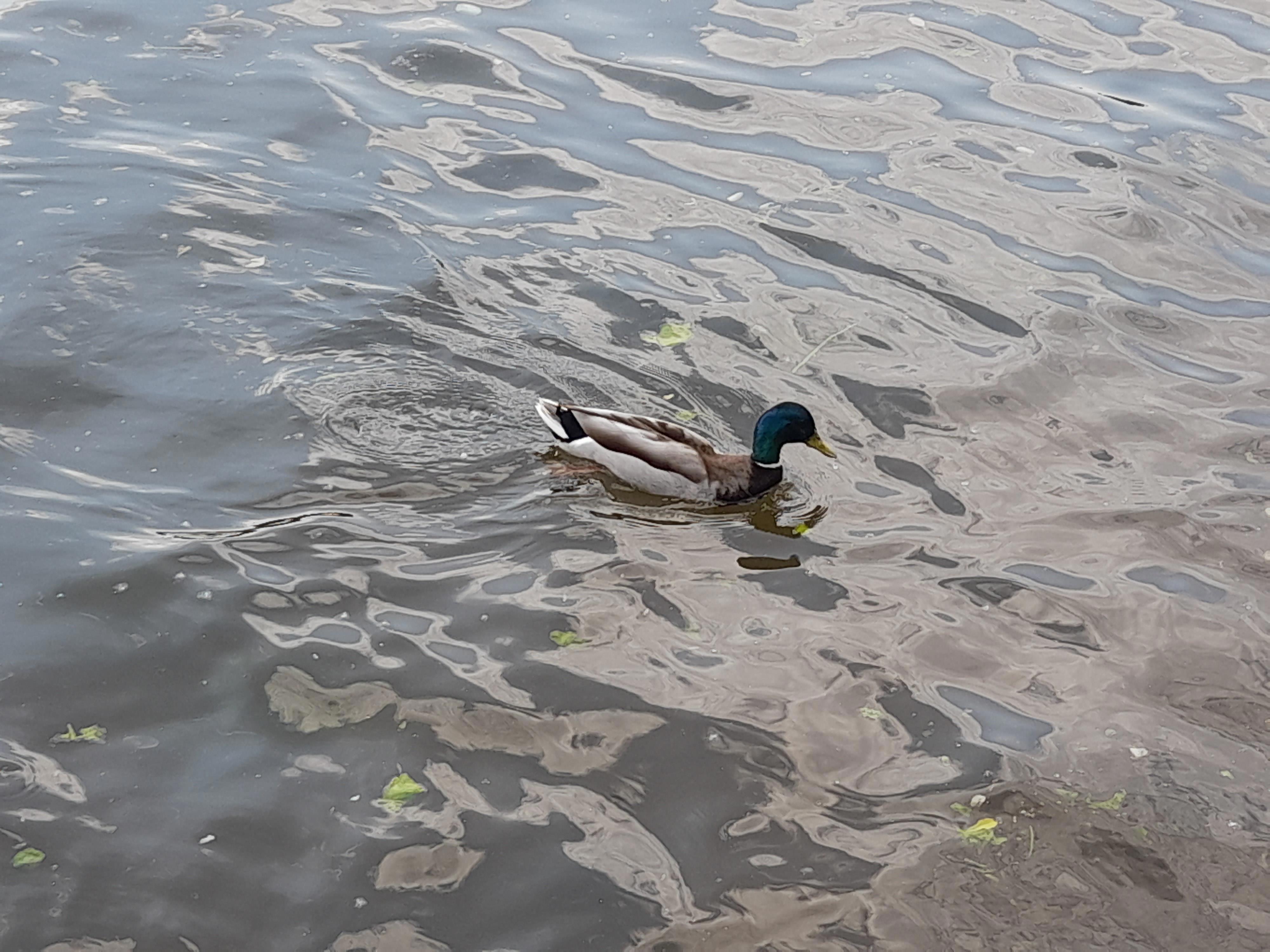Здесь река поглубже и шныряют уточки.