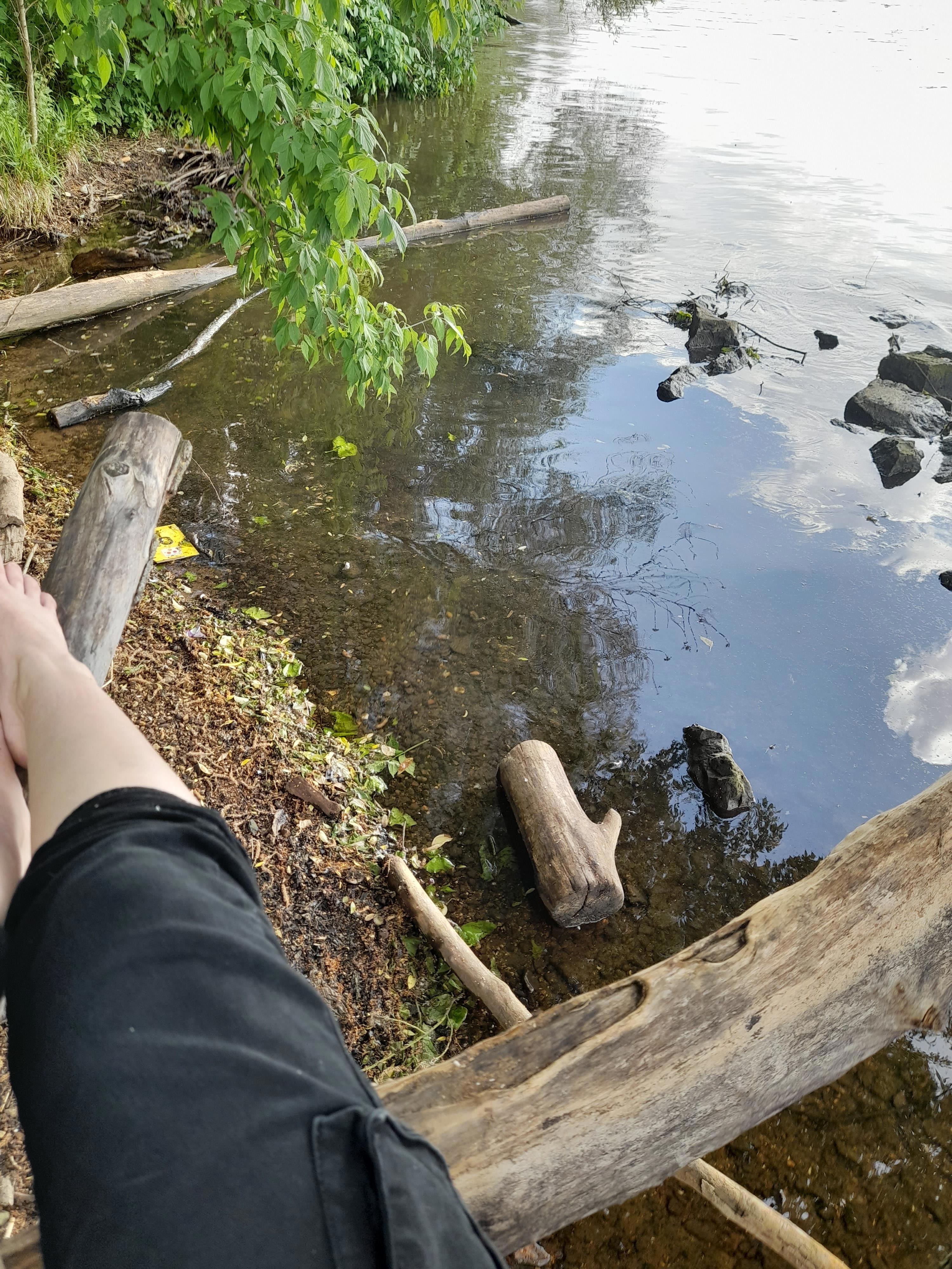 Обратно я пошла через болото. Там ручьи текут и образуют небольшие болотца прямо посреди тропы. Но мне лень было обходить их по мостку. Вышла к воде, помыть ножки))