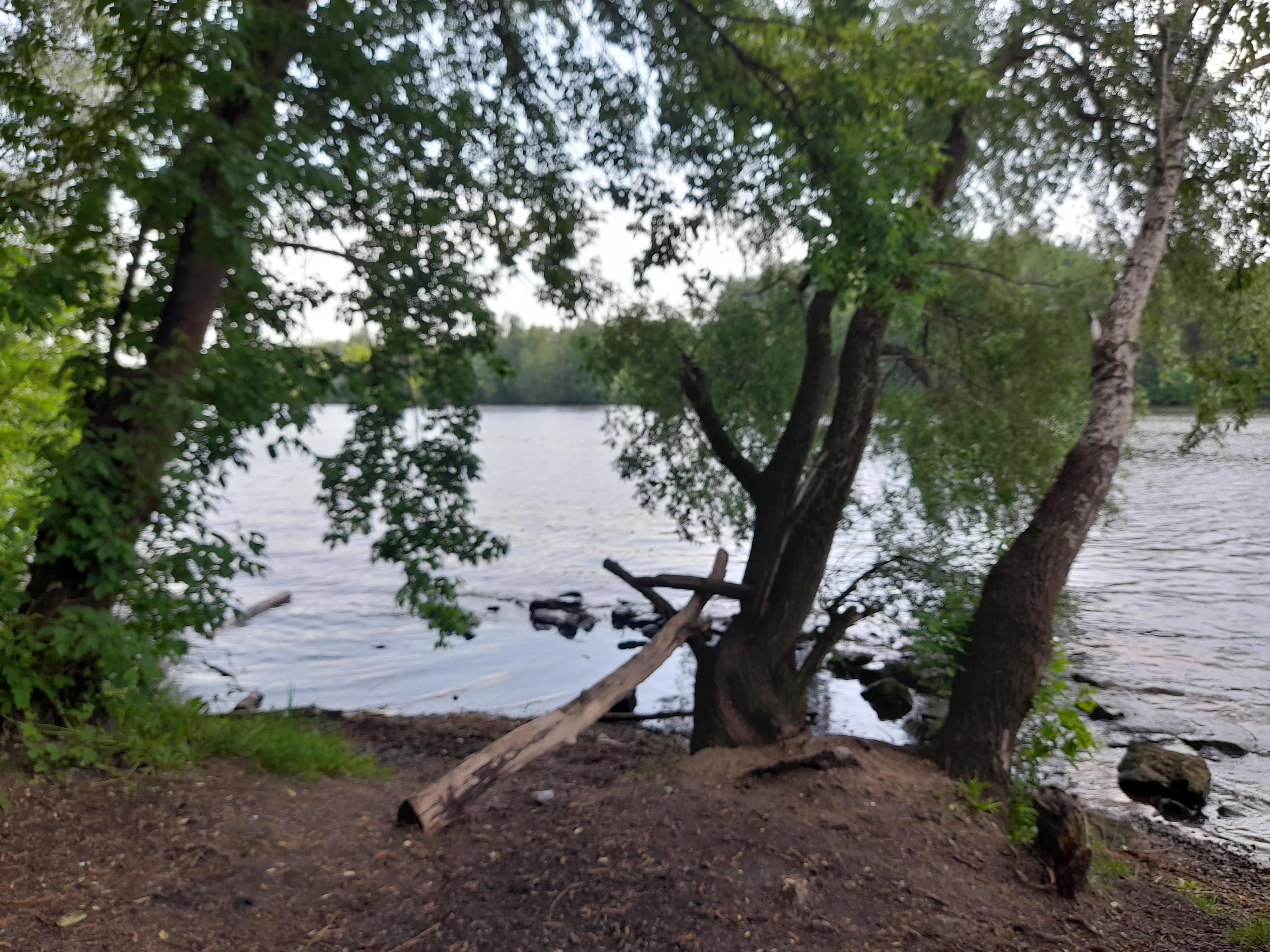 Очень красив зелёный выступ там, где река раздваивается: