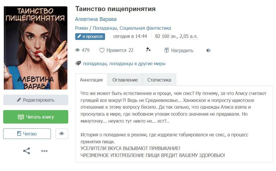 ...все баночки и пакетики пестрели предупреждающими надписями. А на картинках, вместо изображения продукта, как привыкла Алиса, красовались толстяки. Обнажённые полностью, не считая буйосеты, они пугали жировыми складками самого отталкивающего вида.Алиса изучила текст, выбитый на стограммовой упаковочке поваренной соли: