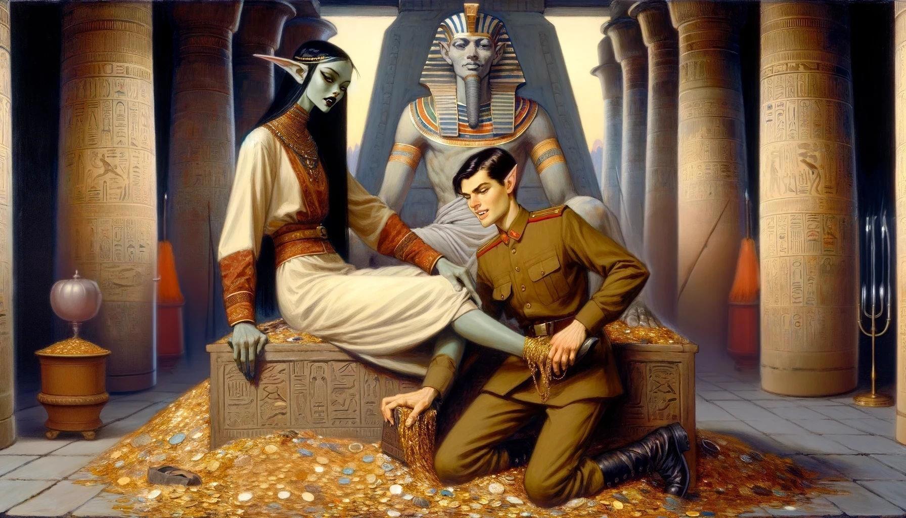 4 Храм стилизация под египет и полон груды сокровищ. формат горизонтальный.