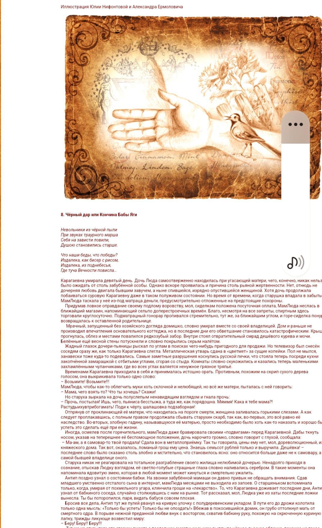 глава 8. "Чёрный дар, или Кончина Бабы Яги": https://author.today/reader/96301/930262