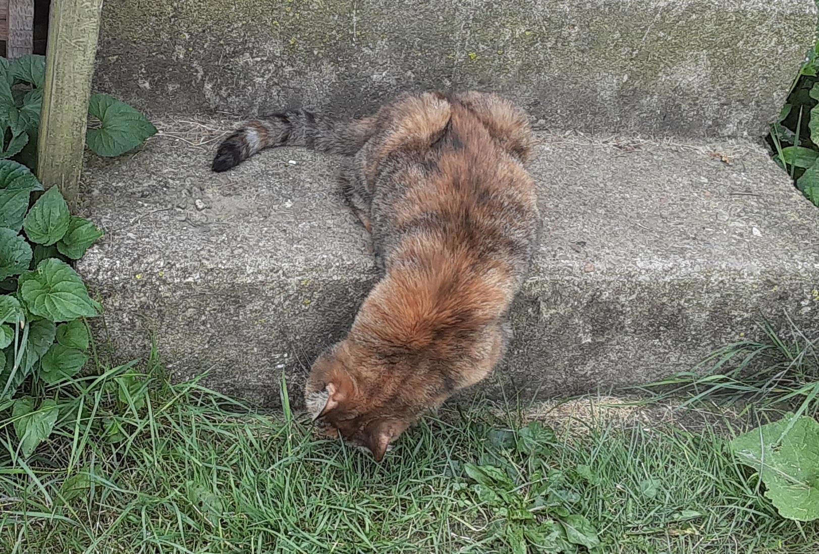 Травоядная Катильда осмелела и выползла травки пощипать...