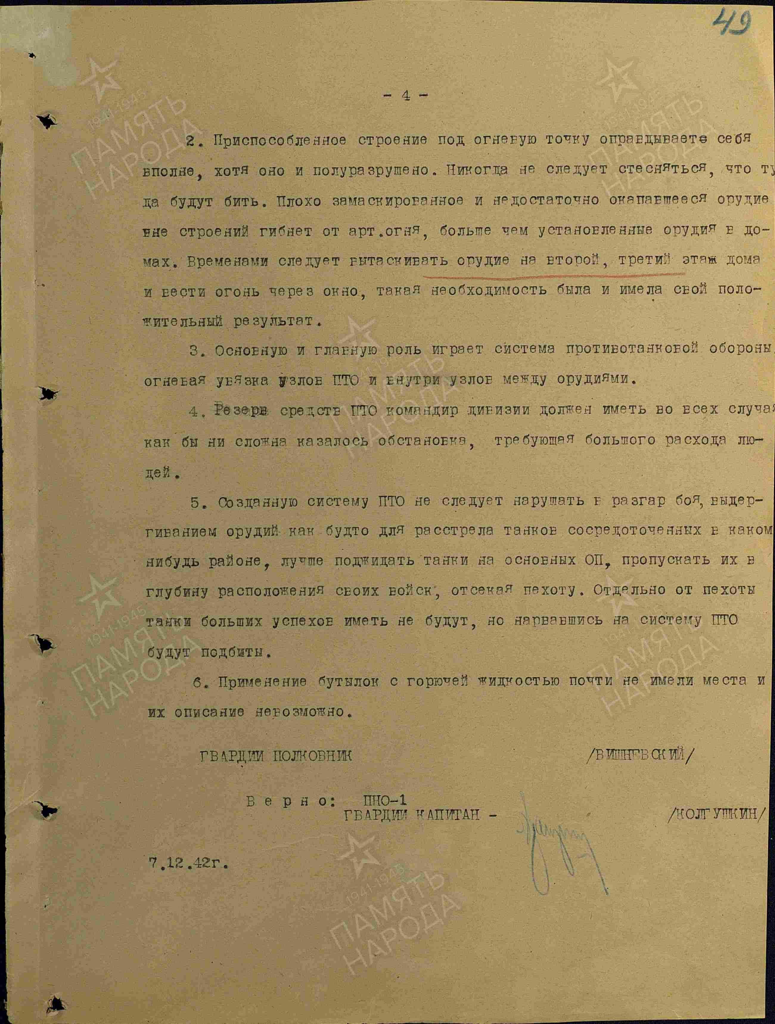 Не знаю, что по этому поводу думал в декабре 1942 гвардии полковник Вишневский, но последняя фраза в четырёхстраничном документе у него получилась запоминающаяся.