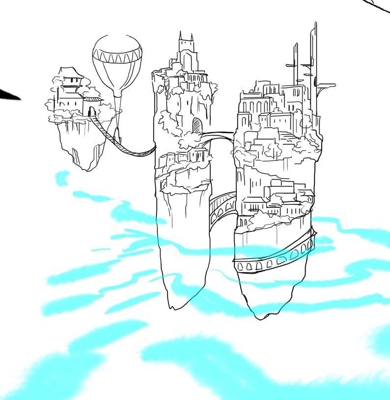 Осталось нарисовать эскиз для последней, третьей суперобложки к "Воланте" (первые две обложки, нарисованные Roklain, я показывала в предыдущем посте). Наверное, лекция о ретро-футуризме так на меня повиляла, что фантазия генерирует много разных проектов летающих городов )