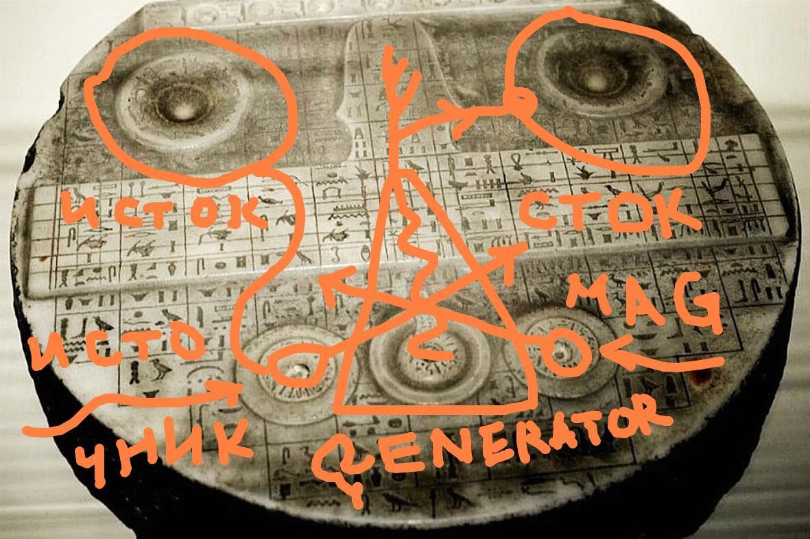 Это секретное приложение к дневнику. Для ясности, прилагаю скрин устройства из гробницы, на нем я нарисовал основные элементы. В верху – чашечка, ( у египтян кристалл цельный и там просто углубление, там вообще только углубления)…ой.