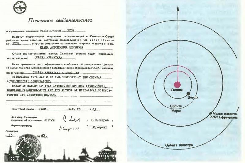 - малая планета 2269 – Ефремиана – открыта 2 мая 1976 года астрономом Н.Черных:
