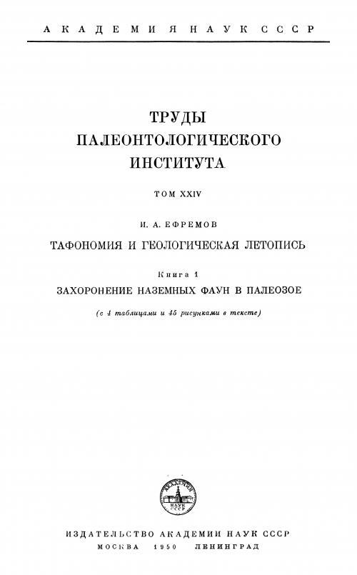 Публикация работы И.Ефремова "Тафономия и геологическая летопись" в Трудах Палеонтологического Института