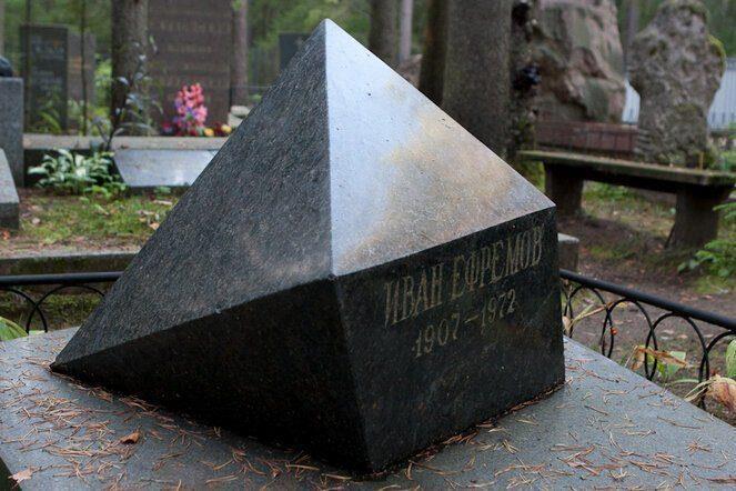Похоронен Иван Ефремов на кладбище в Комарово под Санкт-Петербургом.