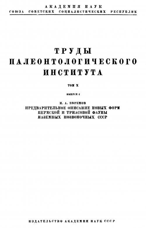 Ефремов И. А. Фауна наземных позвоночных в пермских медистых песчаниках Западного Приуралья. М.: Изд-во АН СССР, 1954. 416 с. (Тр. ПИН АН СССР; Т. 54).