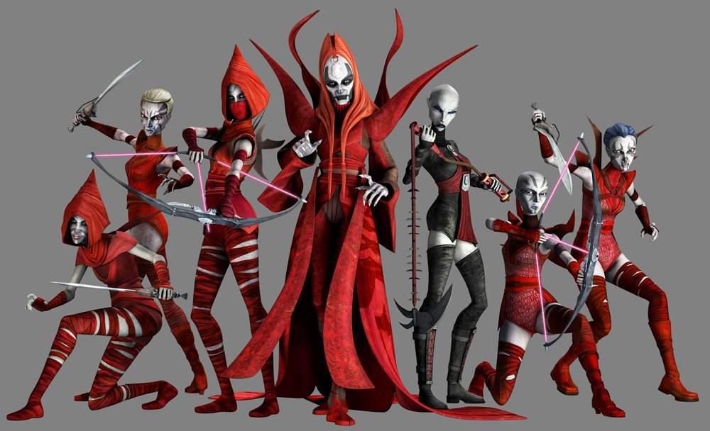 Создала девочек Анисея, а забрачка их выносила. Вот только почему дети получились людьми, а не датомирцами, как Ассажж Вентресс? Датомирцы (фото ниже) ведь — это гибриды людей и забраков. Получается, что забрачка при всём желании не могла стать биологической матерью Оши и Мэй. Тогда кто же близняшкам мать? Сила с мидихлорианами что ли?