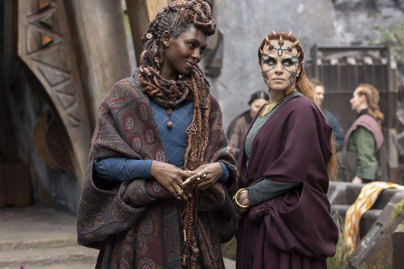 В третьей серии в Аколите впервые показали ведьм. Это не Сёстры Ночи с Датомира, а другая фракция, которая не связана с вышеназванной. В этом ковене нет мужчин, там только женщины. (для сравнения датомирские ведьмы жили хоть и раздельно от мужчин-забраков, всё равно периодически к ним наведывались для размножения, иначе как они существовали в Галактике тысячи лет). Возглавляет ведьм Мать Анисея, которая является космической экстремисткой. У неё есть такая же космическая экстремистка, которую зовут Корил, если не ошибаюсь. Не помню имени. А в вукипедию лезть мне лень. Не стоит Аколит этого. Обе они на скрине ниже, Анисея — чернокожая, а вторая экстремистка — забрачка.