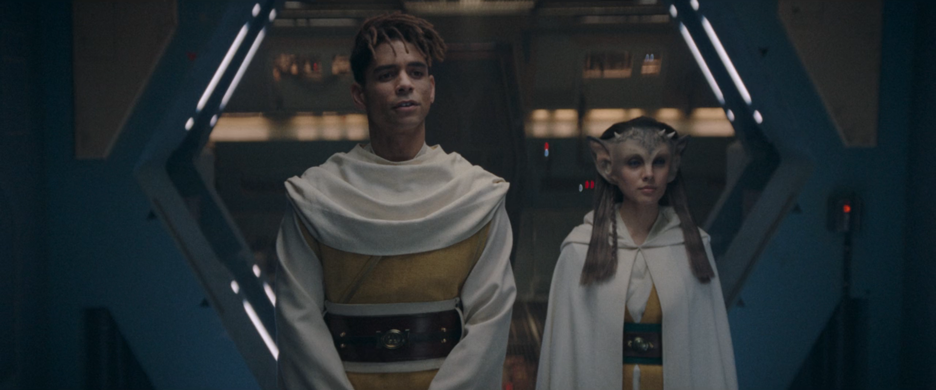 Ещё в Аколите одежда выглядит дёшево. Во-первых, у ведьм это какие-то бомжатские тряпки. Спасибо, что не набедренные повязки, а то им вон в эпоху космических полётов выделили луки со стрелами, как у всяких папуасов. У джедаев материал одежды выглядит как-то неестественно дёшево. В привелах и даже в оригинальной трилогии у Кеноби одеяния выглядели куда лучше. А в аколите ситуация обстоит куда хуже. Я не специалист по тканям, но даже я вижу что материал, какой-то не соответствующий большому бюджету (180 миллионов долларов).