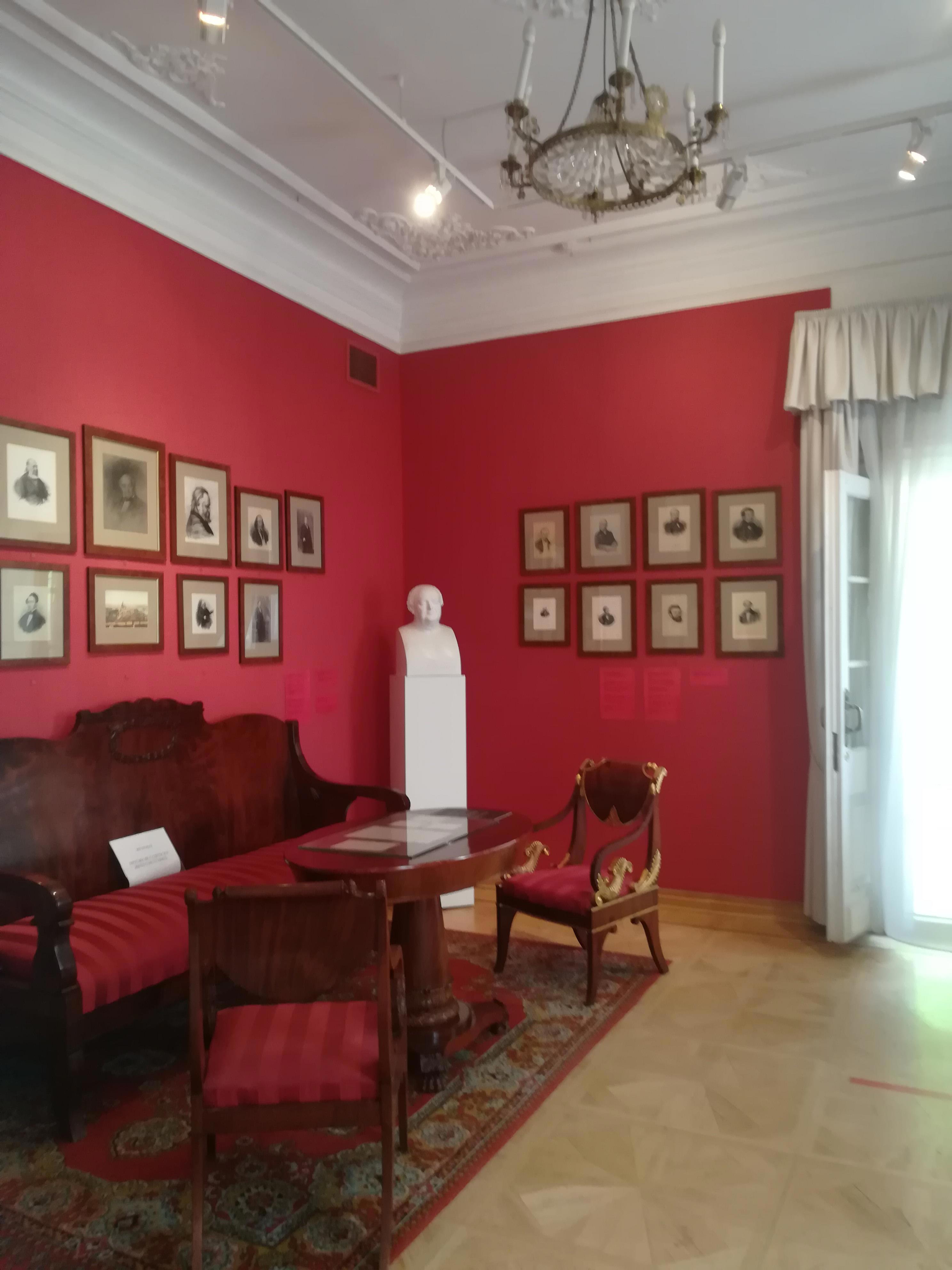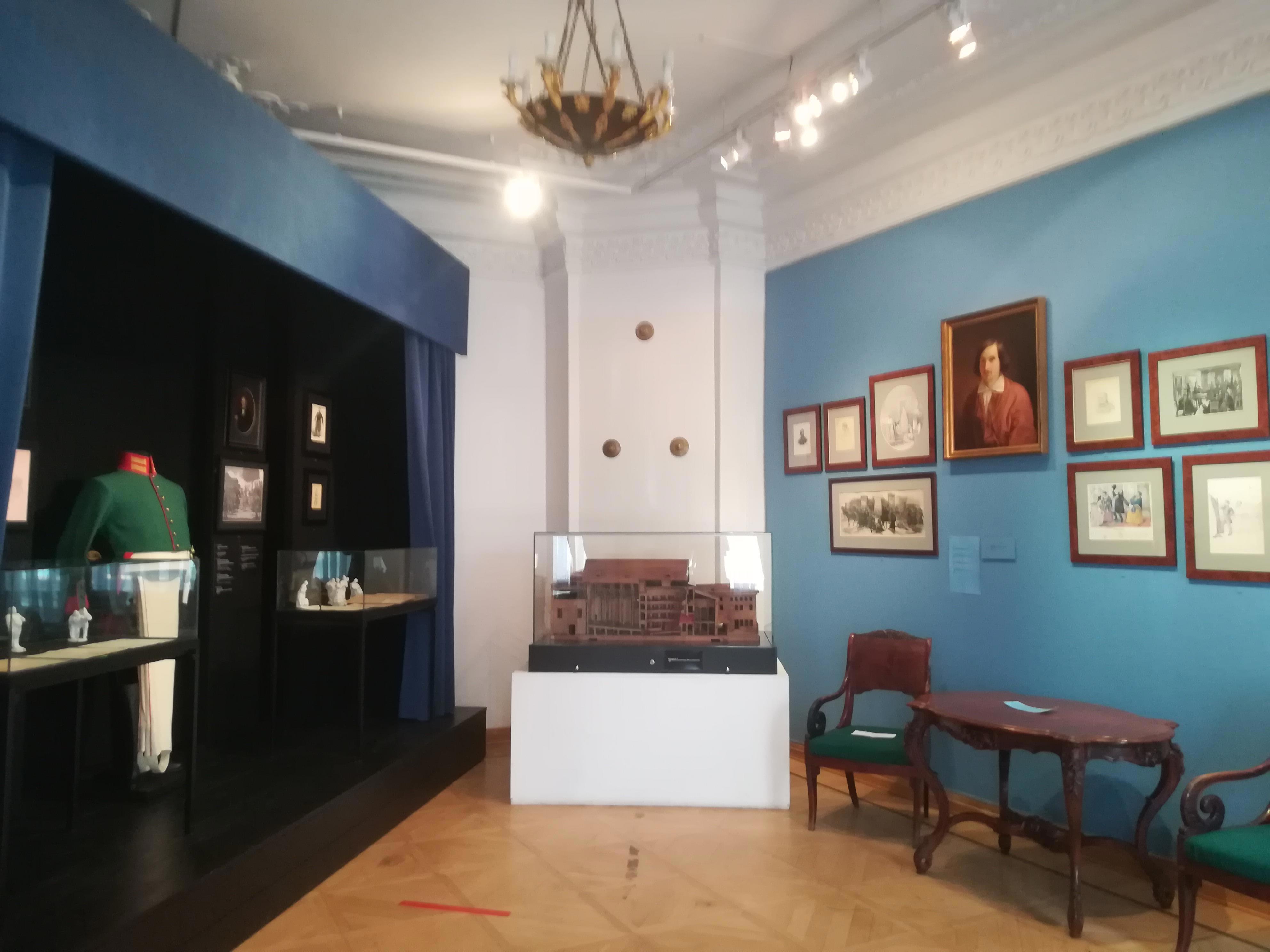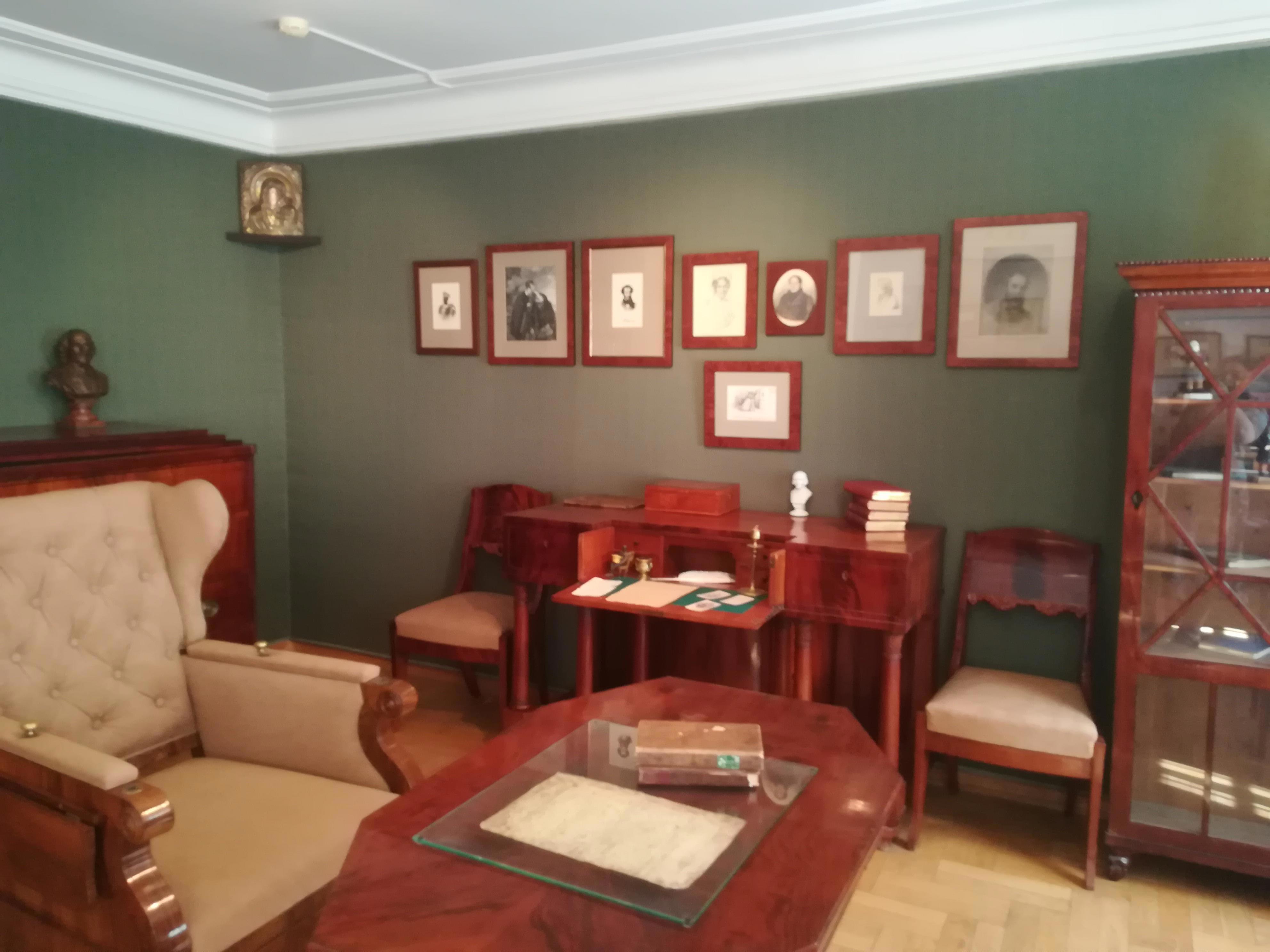 На столе 2-х томник Мертвых душ, по преданию – подарок самого Гоголя. А под стеклом я не скажу что, пусть будет интрига, и вам самим захочется все посмотреть)