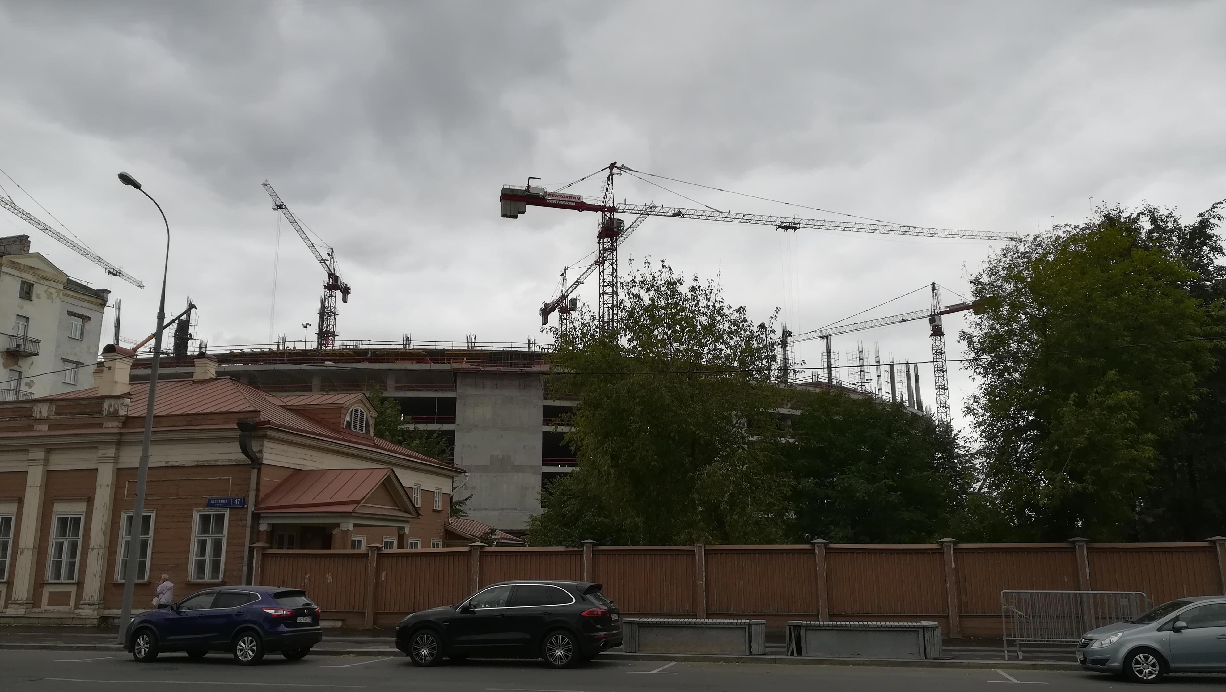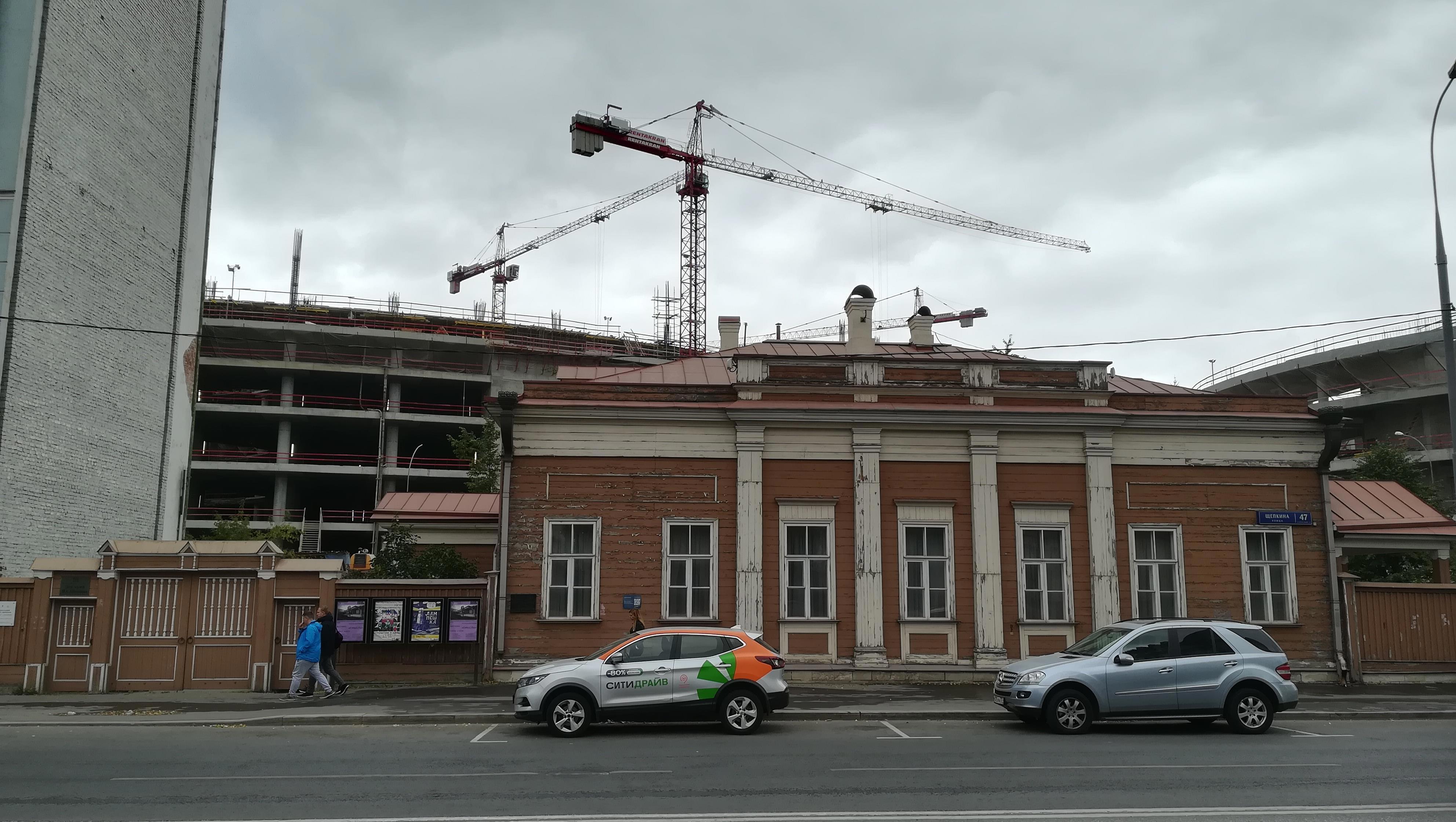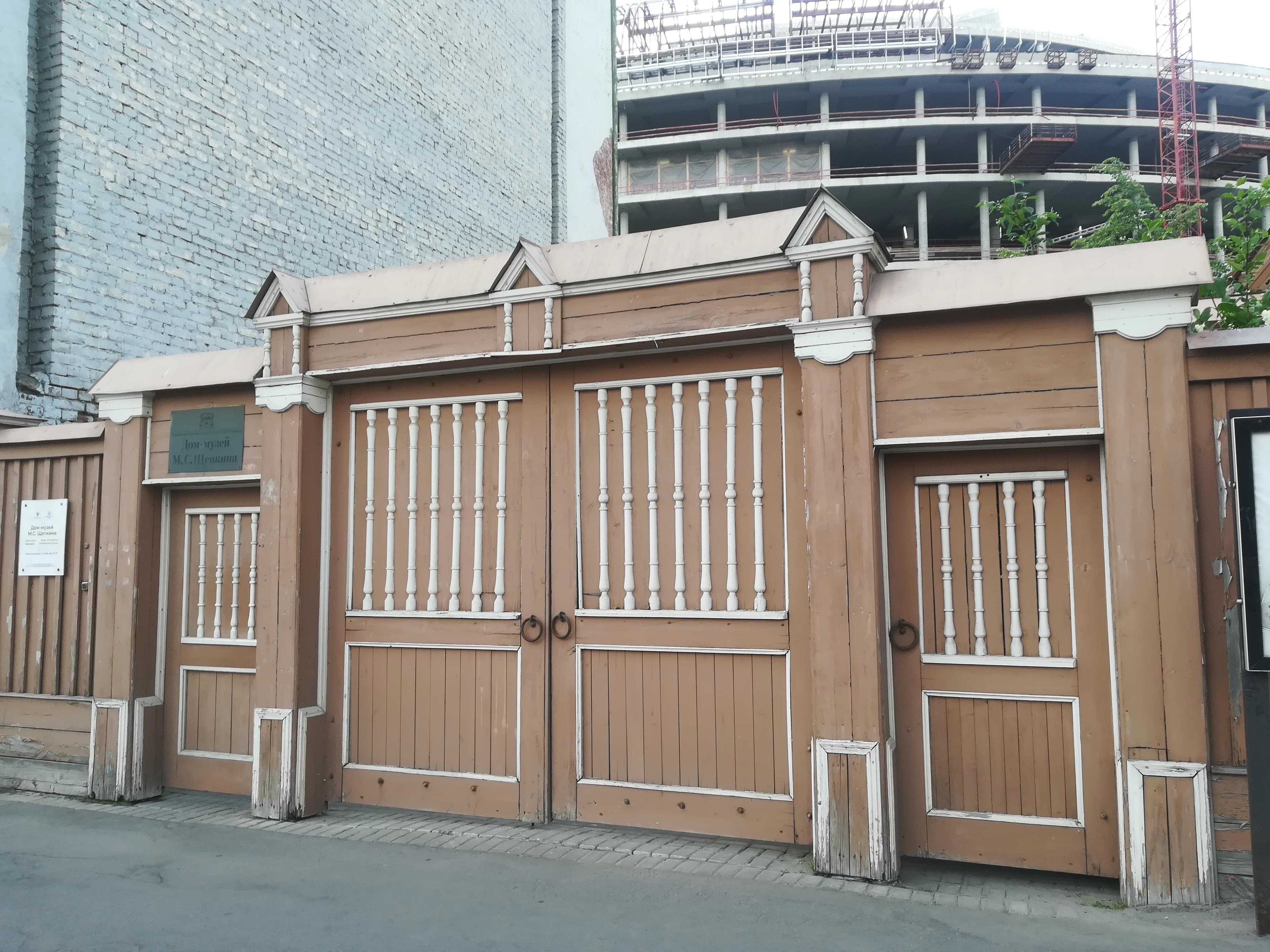 Маленький на фоне остальных зданий такой купеческий домик с садом.