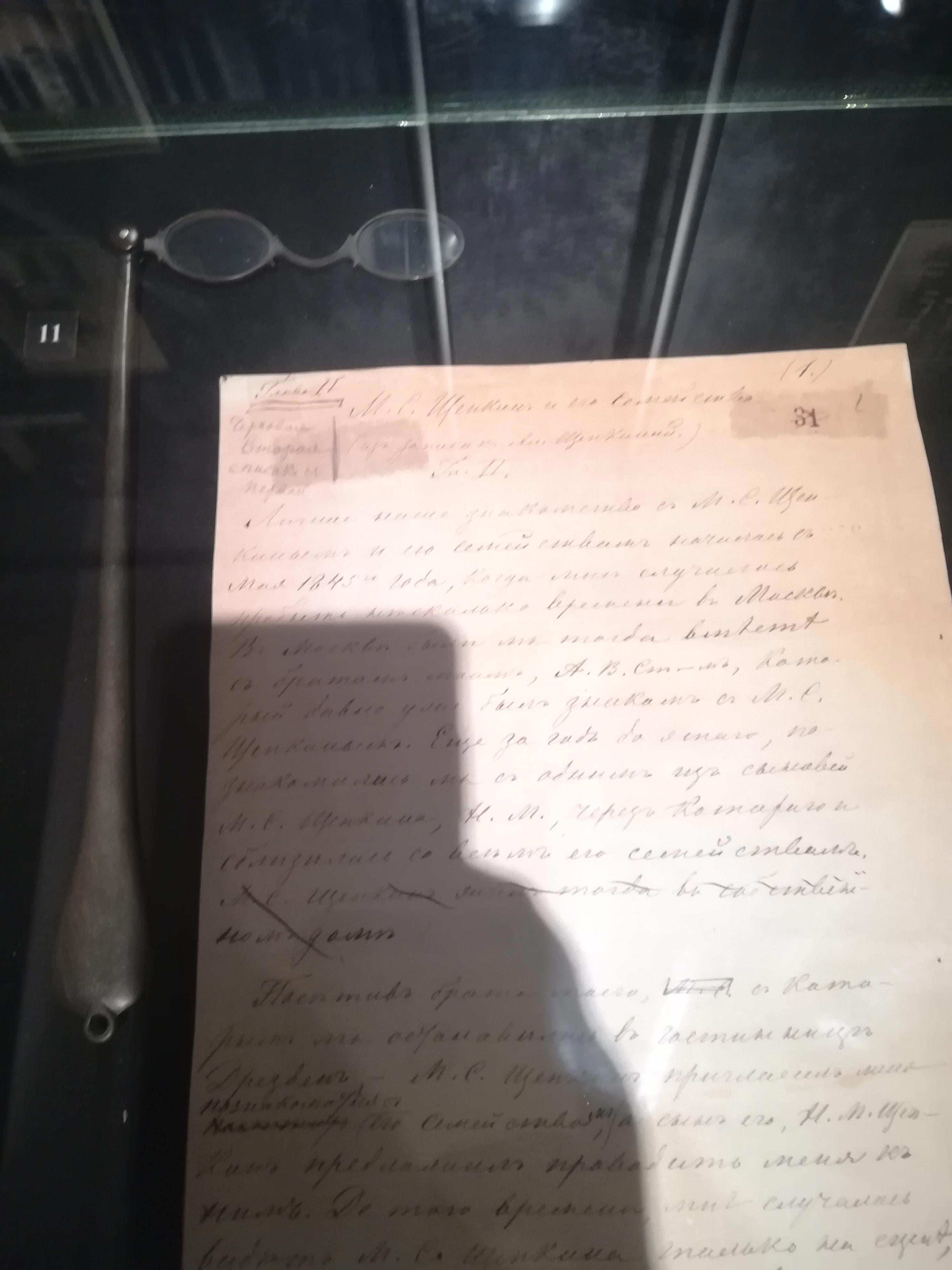 В этом кабинете актер работал. Противник зависимости от случайного вдохновения, Михаил Семенович Щепкин стремился найти объективные законы искусства актёра, разработал метод сценического творчества, основанный на обобщении широких жизненных наблюдений. Указывая на необходимость всестороннего осмысления исполнителем творческих задач, подчинения всего творческого процесса «общей идее», Щепкин говорил, что актёр должен не копировать, а вникать в «душу роли», влезать «... так сказать, в кожу действующего лица...». Его игра отличалась ярким темпераментом, юмором, жизненной правдой. Огромная наблюдательность, удивительная работоспособность, он серьёзно изучал теорию и практику сценического искусства.