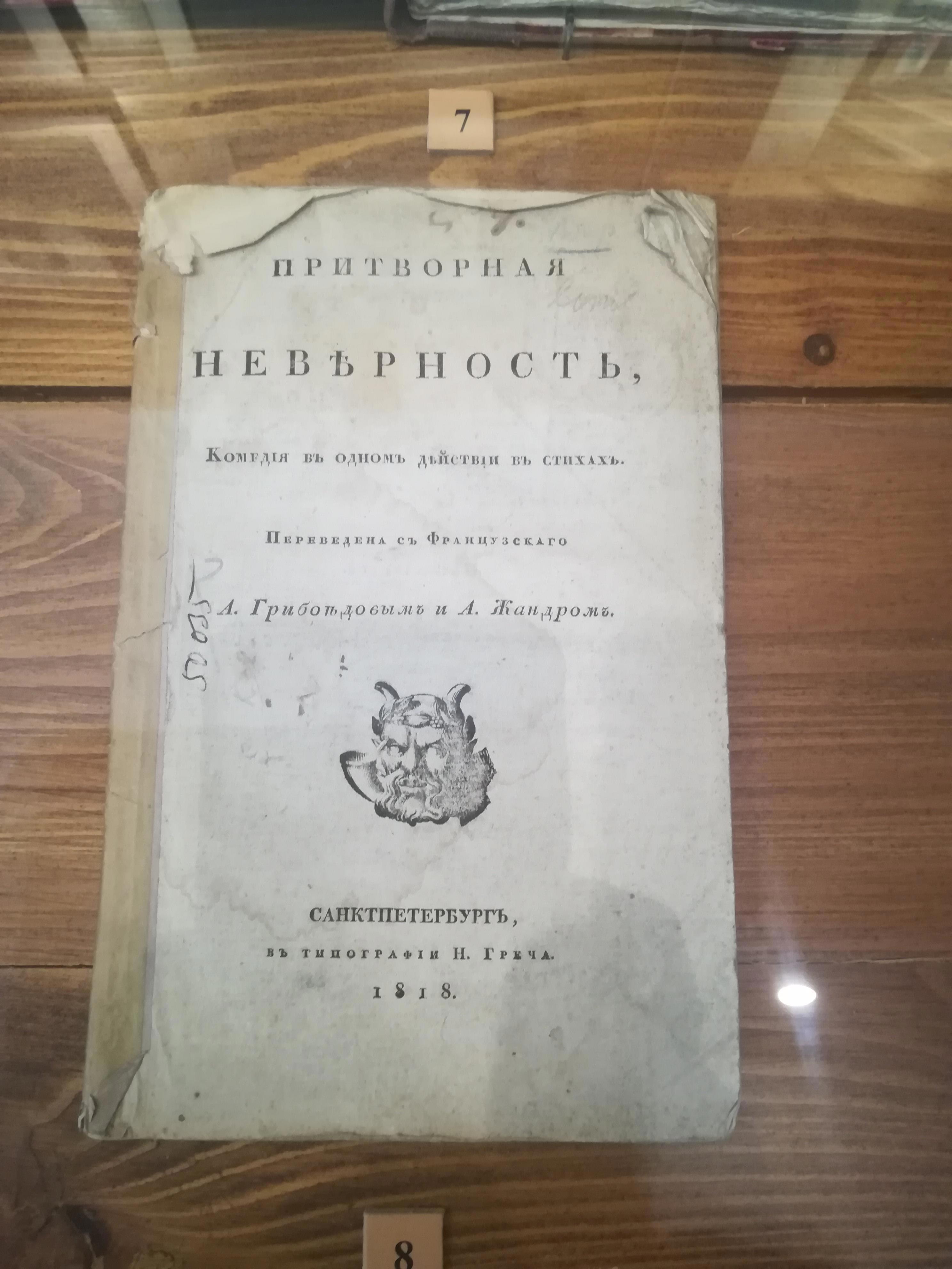 Издание 1818г. Н.Г. Барт "Притворная неверность", комедия в стихах, перевод с франц. А.С. Грибоедова и А.А. Жандра. Щепкин играл роль Блёстова с 1818 по 1827гг.