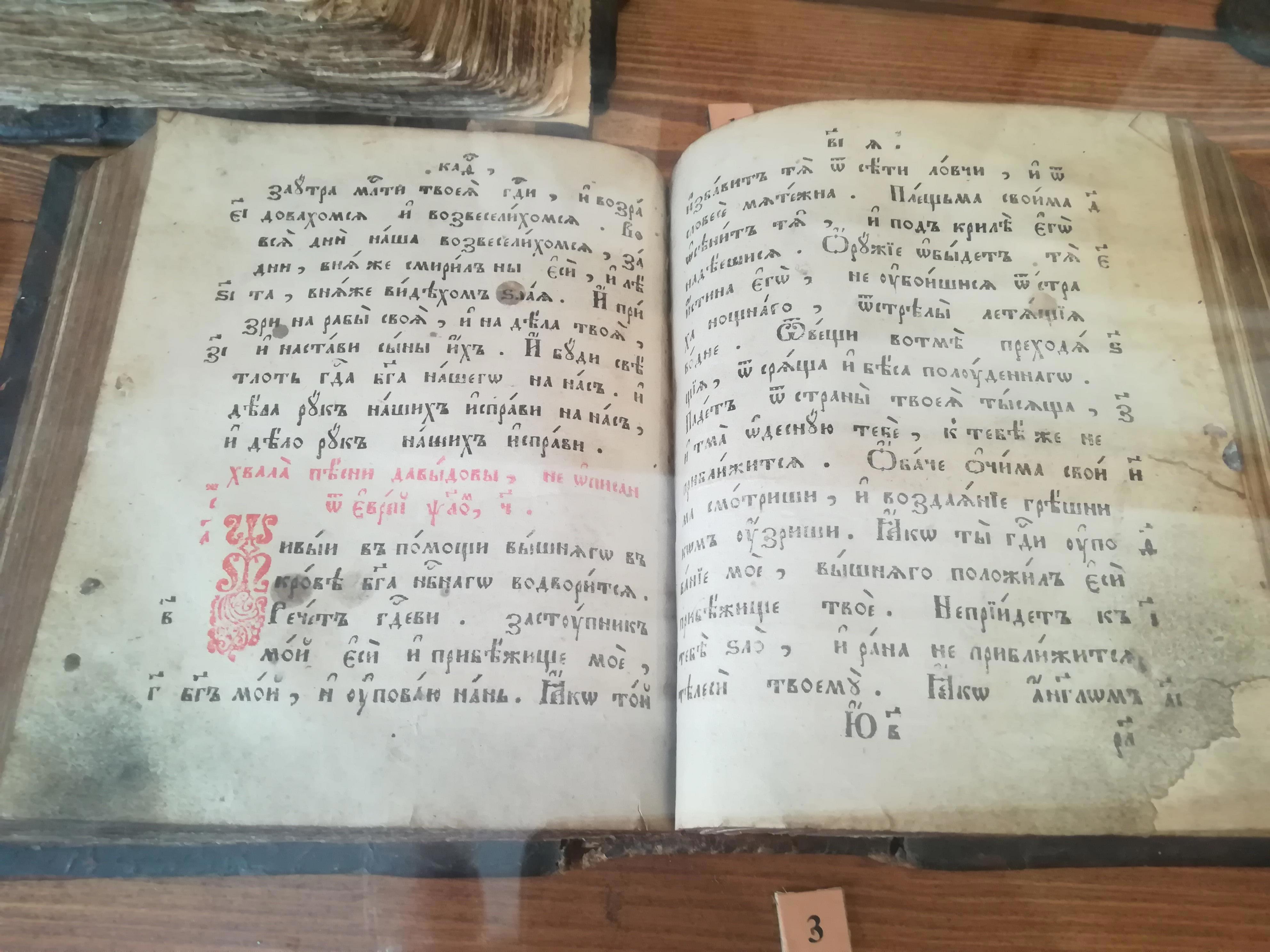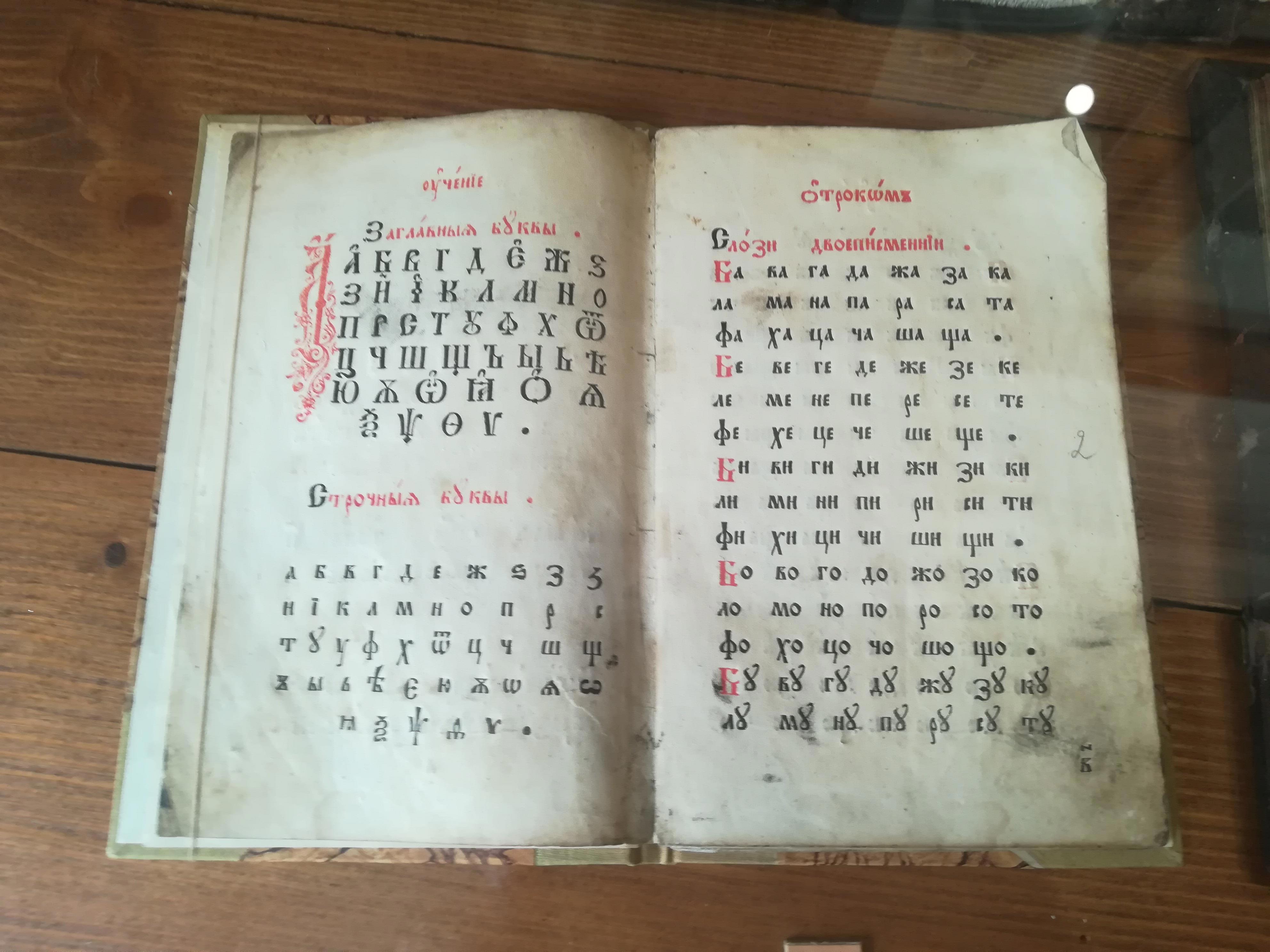 Часослов, азбука, псалтырь, 18 век, с такими, а может и этими книгами актер ходил в школу. Наверное, ребенку было нелегко носить тяжелые книги, но он старался, учился, выше на фото они за стеклом, все три слева.