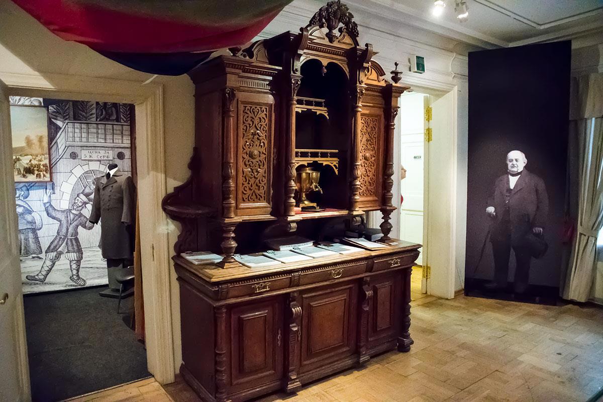 Музей начинается с прихожей, иначе именуемой буфетной, и встречает пришедших в дом-музей М. С. Щепкина ростовой фигурой своего прославленного хозяина. Это очень необычная и теплая деталь)