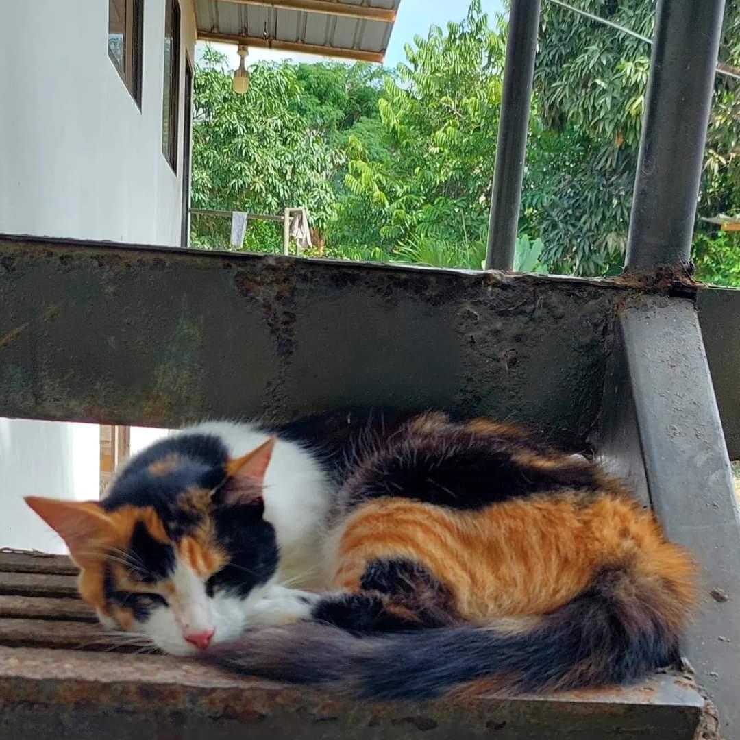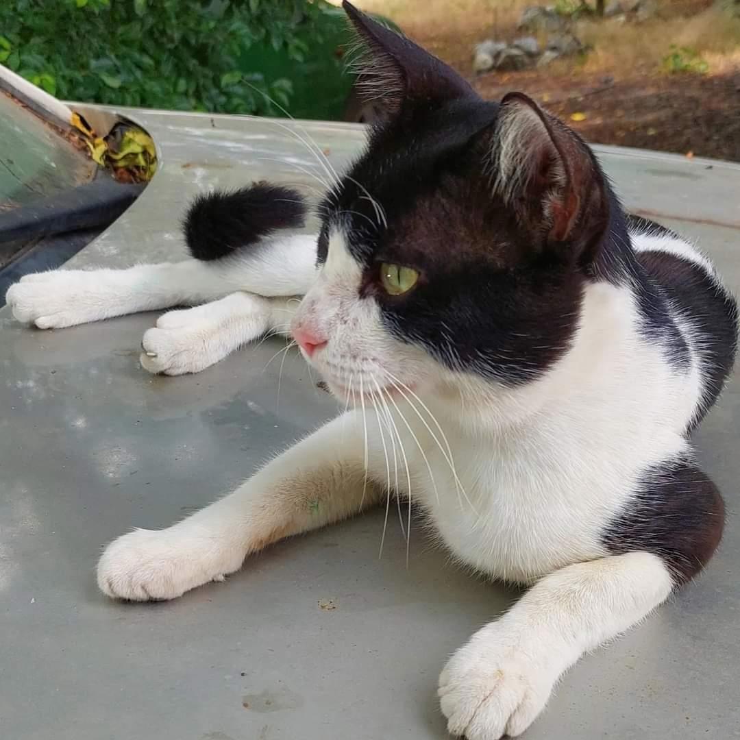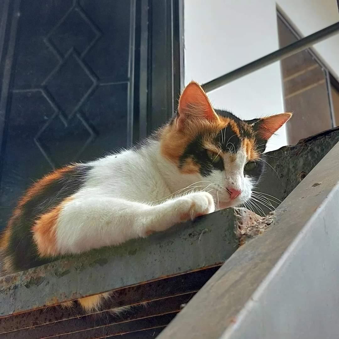 У кошки - шерсть длинная, ей и на лестнице хорошо. Кот - гладкий, а потому греться предпочитает на теплом капоте:
