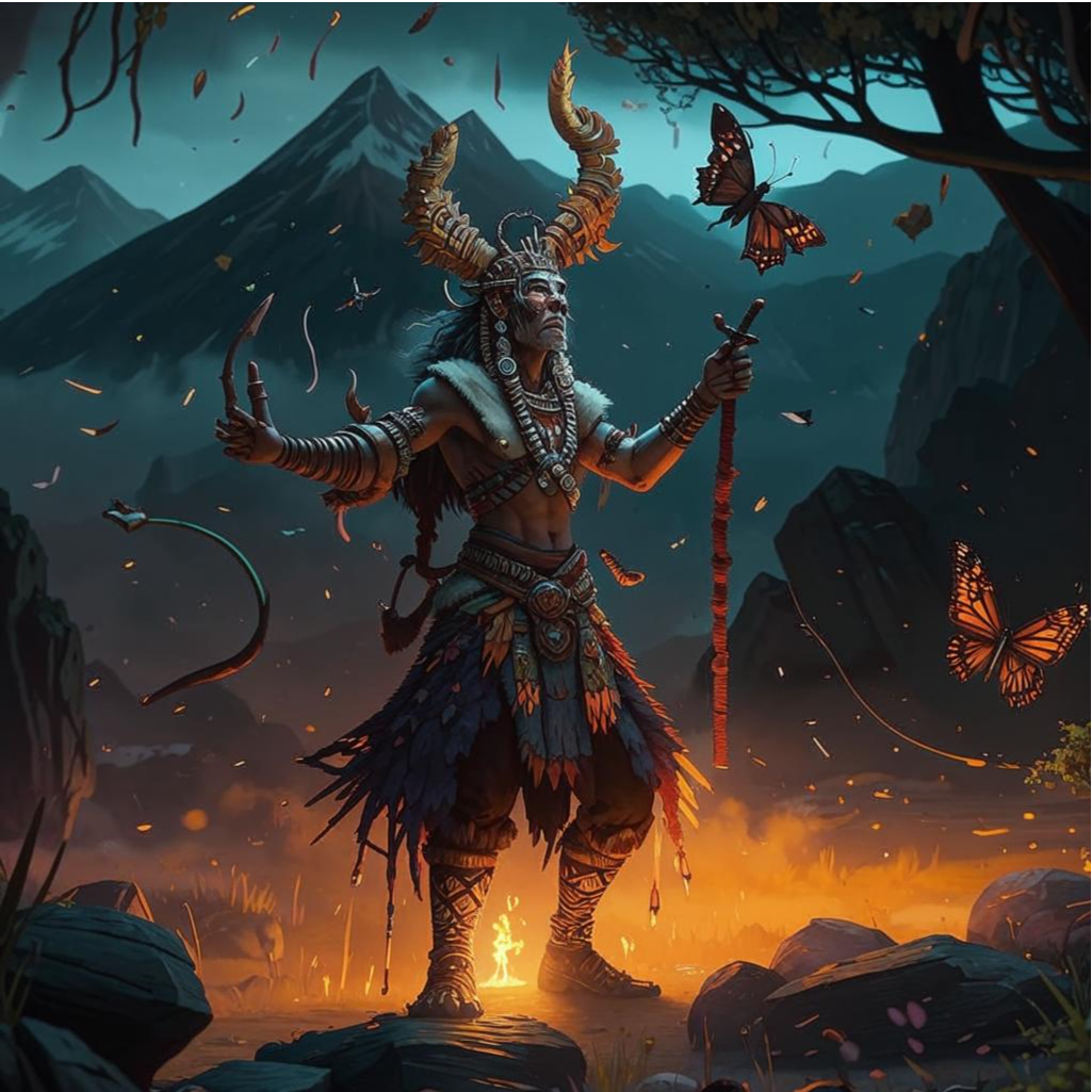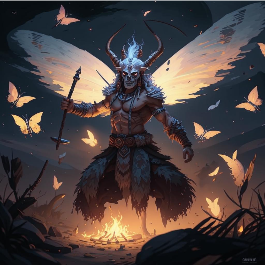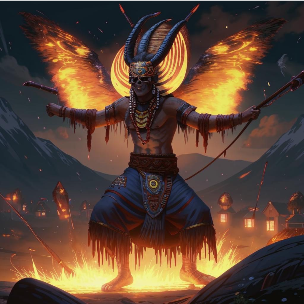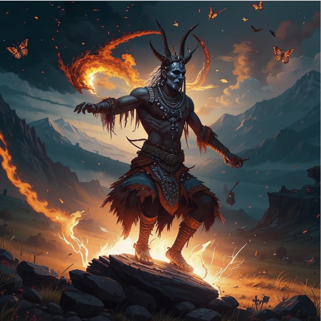 Вот такие загадочные и даже устрашающие образы у меня получились при работе в нейросети "fusionbrain" над иллюстрациями к "Шаманской песне"