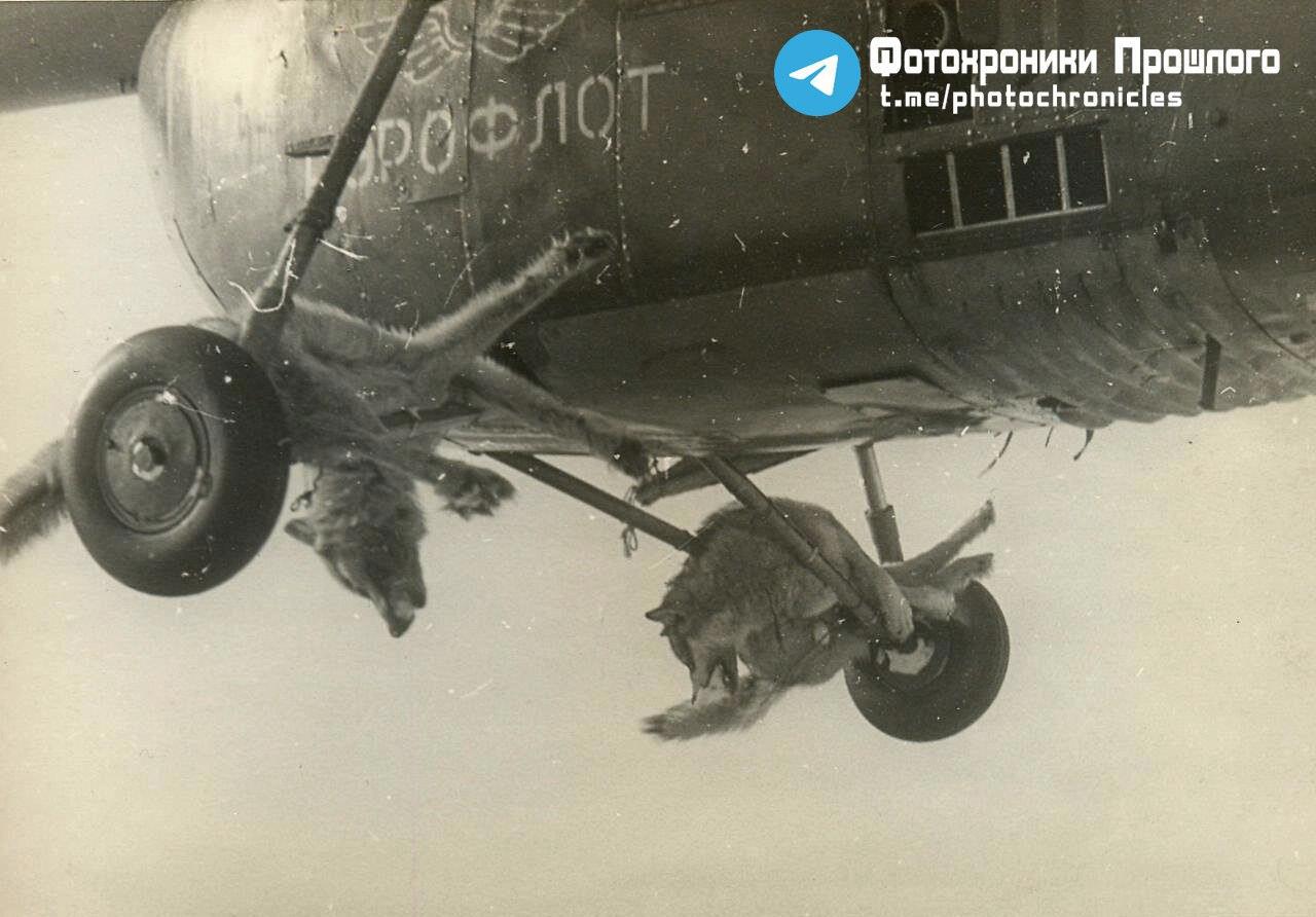 Подстреленных волков везут привязанными к шасси самолета. Очень густо пахнут и потому в салон не сунешь.