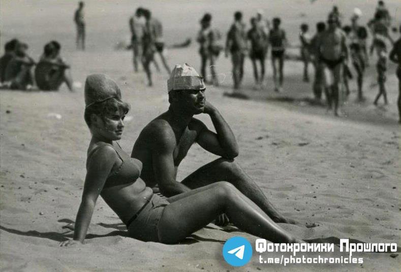 Это Волга, друзья, и 1967 год. У девушки, как я понимаю, на голове шиньон, а у парня — панамка из газеты. Я умел делать две её разновидности: в виде пилотки и в виде ковбойской шляпы. А вы?