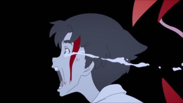 Первое, что бросается в глаза – рисовка. Она способна как зацепить, так и оттолкнуть. Эмоции персонажей гипертрофированы, тела вытяну, искривлены, в движениях их гнет, сминает, растягивает. Из положительных примеров подобной рисовки могу вспомнить Промар, Килл ла Килл, Гурен-Лаганн, Фури Кури. То есть, самое то, чтобы показать, как люди видоизменяются в чудищ и как герой нарубает врагов в кимчи.