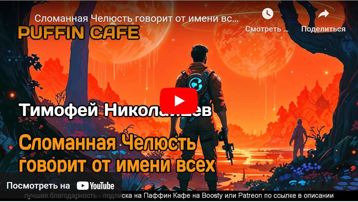 Между прочим, Puffin Cafe озвучил несколько сотен рассказов классиков фантастики: от Азимова и Шекли, до Уиндома и Геймана. А теперь и пару рассказов Николайцева в придачу