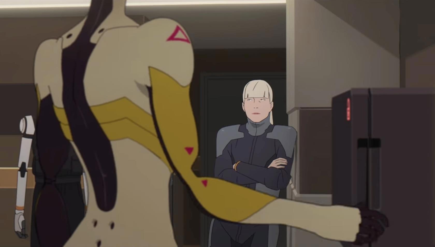 Из релевантных аналогов: "Я - робот", "Призрак в доспехах". Вероятно "мечтают ли андроиды об электроовцах" - книгу я помню плохо, но мне видится она тут более релевантной чем первый Блейдраннер. Второй "Блейдраннер", возможно покажется релевантным, если вы его поняли, если же не поняли, то и этот мульт вероятно покажется мутным аттракицоном.
