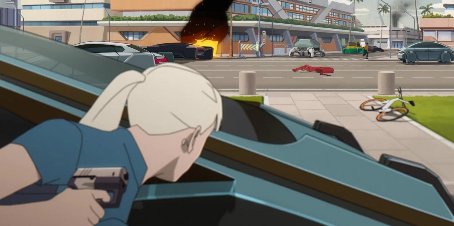 Также есть изрядно футуристичного технопорно - это и механизм спасения при авариях, и изрядные приколы с андроидами (например установка обновлений). Увы, когда в поле зрения попадает массовка роботов, то возникает унылое впечатление, что художник думал о пончиках, а не о логике.