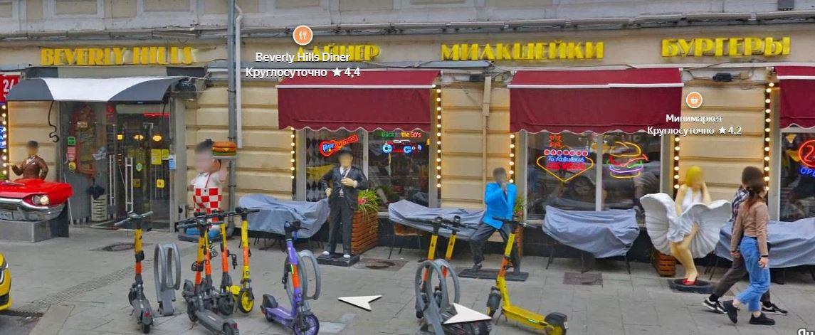 "Друзья выбрали столик у окна, из которого был виден пустой оконный проём и обгоревшая стена. За стеклом пластиковая Мэрилин безуспешно пыталась бороться с ветром, задирающим её платье.