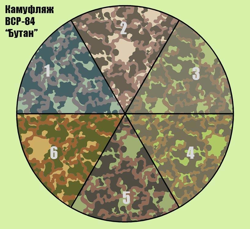 А вот этот ранний вариант лично мне, вроде бы, ещё не попадался. И, имхо, в качестве камуфляжа для лесистой части России он выглядит гораздо интереснее достаточно тёмного позднего "Бутана" и слишком контрастных и "арбузных" ВСР-93 и 98. И по палитре, и из-за визуального лёгкого размытия контуров пятен.