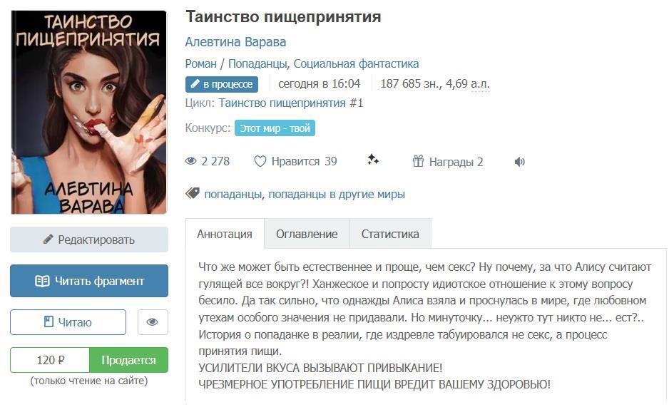 Как живётся попаданке в такие реалии Алисе и что ждёт её - читать в книге "Таинство пищепринятия". Обновления каждый день!