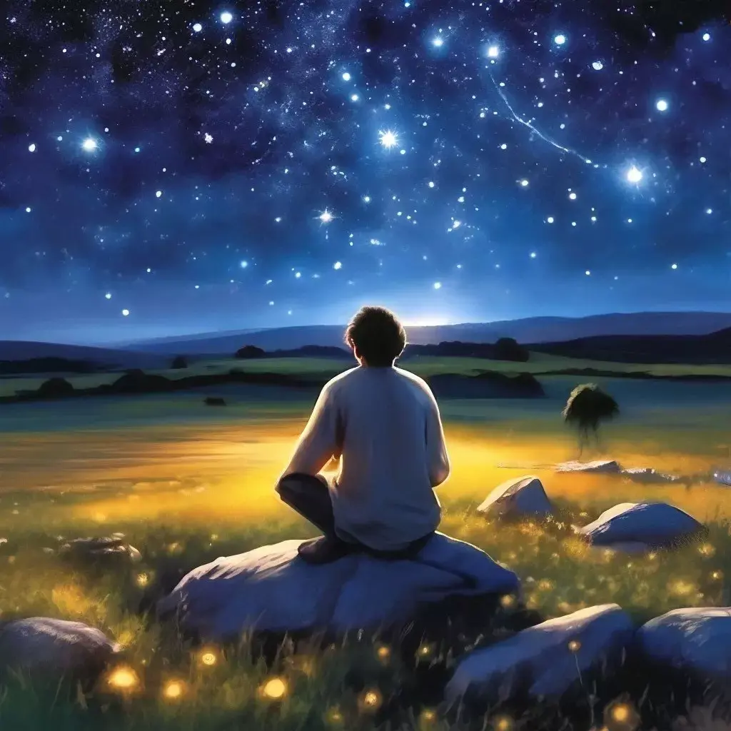 Перед глазами возникло чудесное поле. Вокруг было темно и только лишь свет от звёзд, которые в огромном количестве были разбросаны по небосводу, освещали волшебным светом пространство.