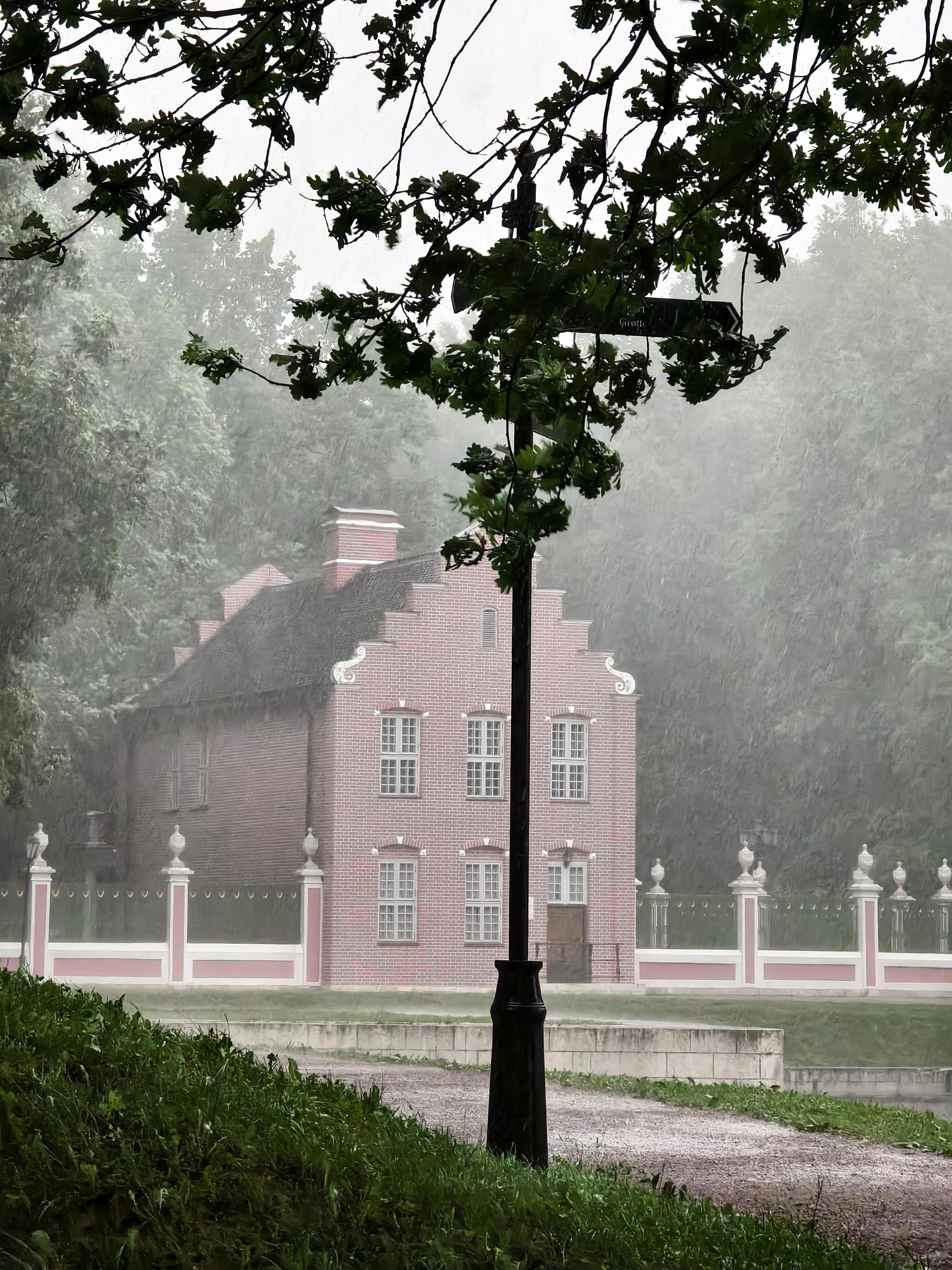 Прогулка закончилась сильнейшим ливнем. Ветер срывал мелкие ветки и листья с деревьев.