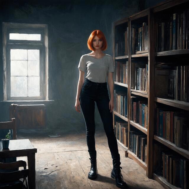 Добиться вменяемой человеческой фигуры в случае девушки у книжных полок оказалось дико сложно: только одна (!) из примерно полусотни попыток дала что-то не очень страхолюдное.