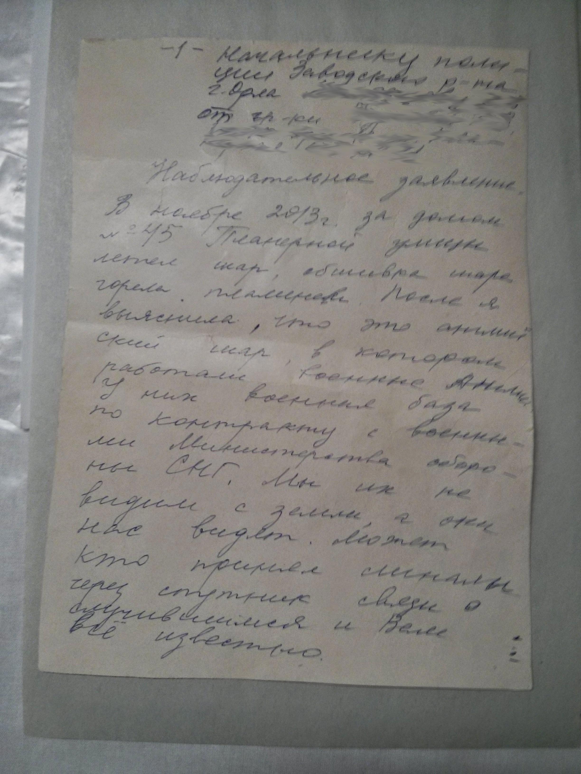 Вот такая история. Еще был там рапорт от участкового, который опросил соседей на предмет горящих шаров (и никто их не видел). Вывод - засекретили всё, гады, и попрятали от общественности)))