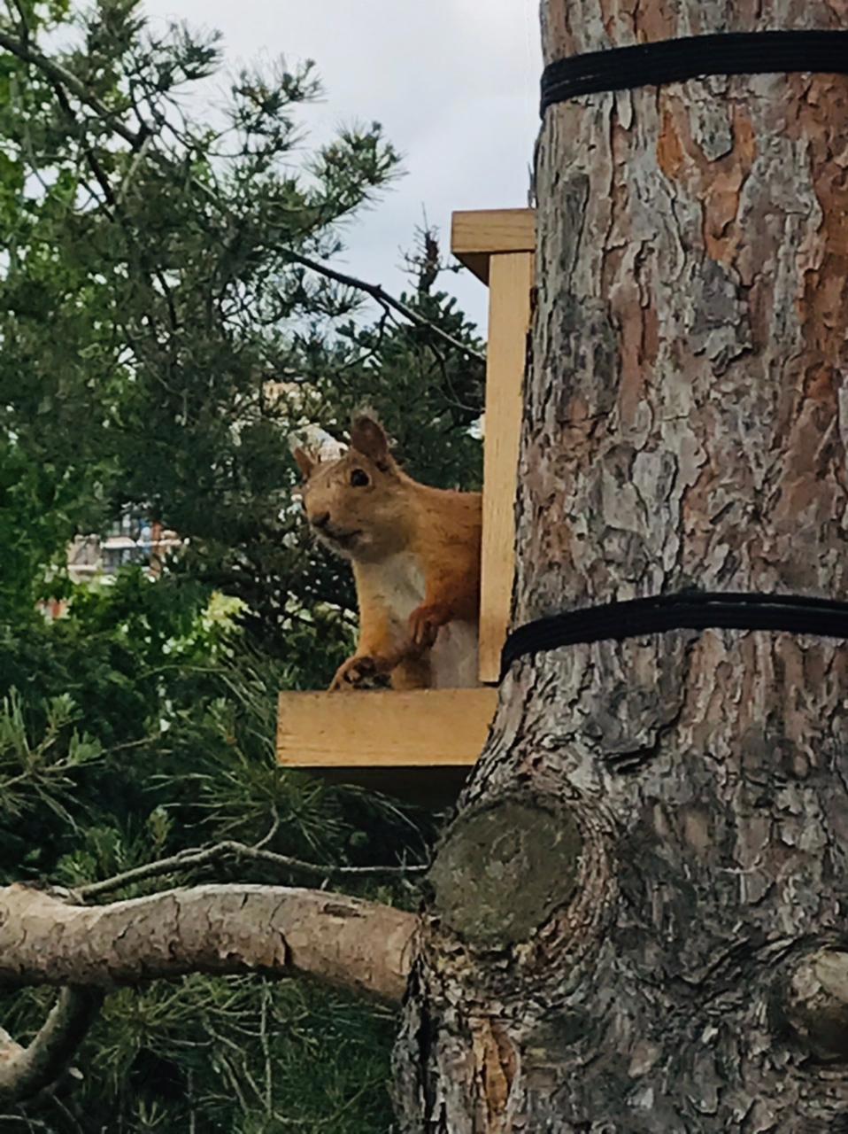 Нужно, сказать, что на каждом углу в саду натыканы камеры, но где они, невооруженным взглядом заметить трудно. Одну из них я обнаружил - всевидящее око торчало прямо из дупла белочки-(нимфоманки).