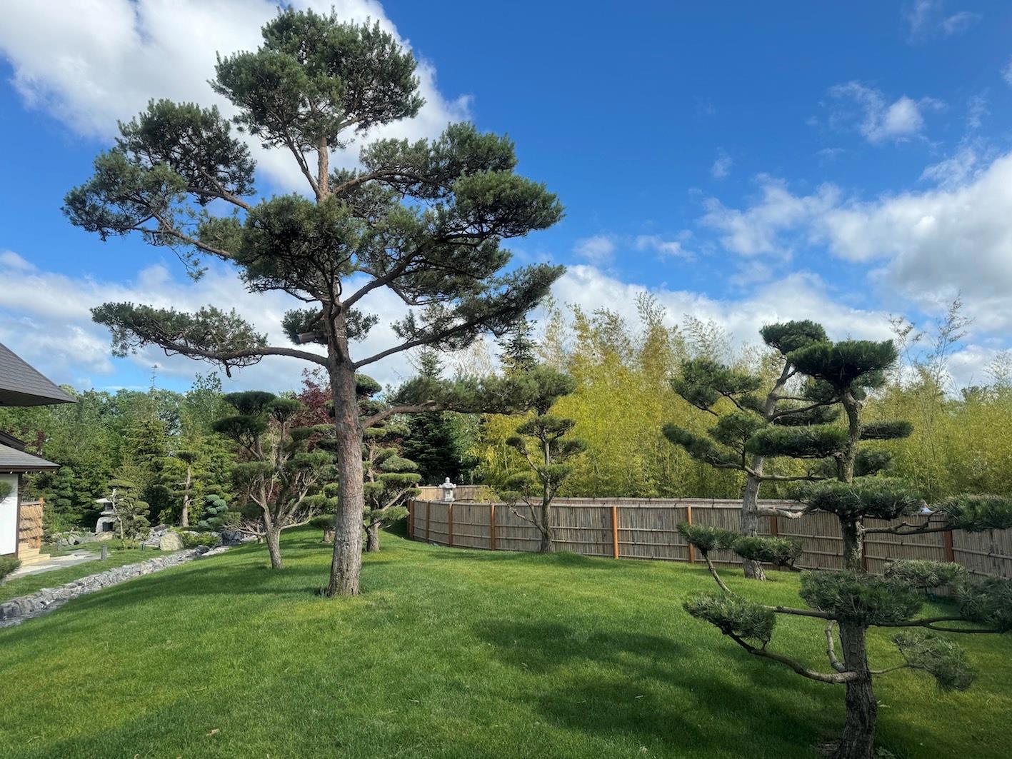 Сразу при входе растет японский крыжовник. Ягод пока нет, садовник объяснил, что первые пятьсот лет дереву нужно «настояться», а потом уже можно получать урожай.