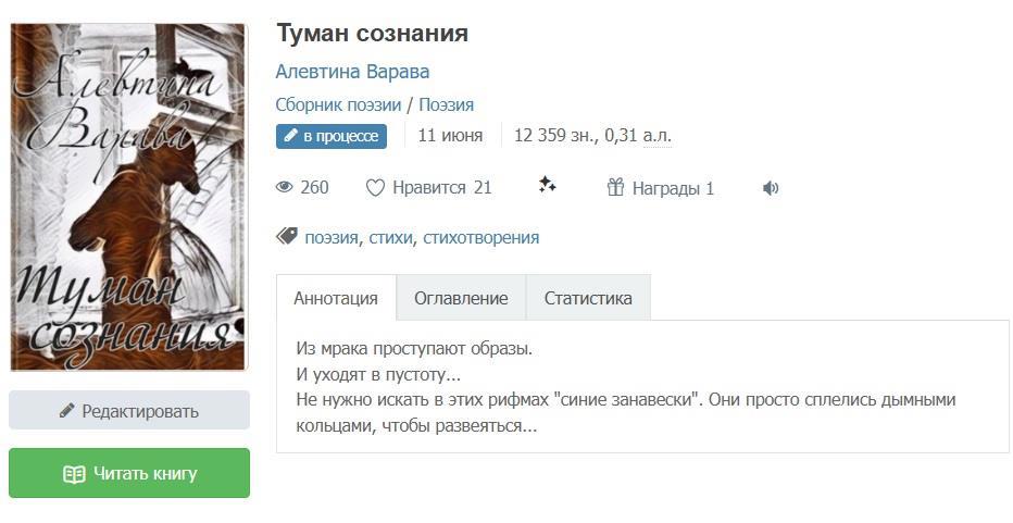 Сборник поэзии "Туман сознания" ждёт своих читателей и очень радуется вашим лайкам)