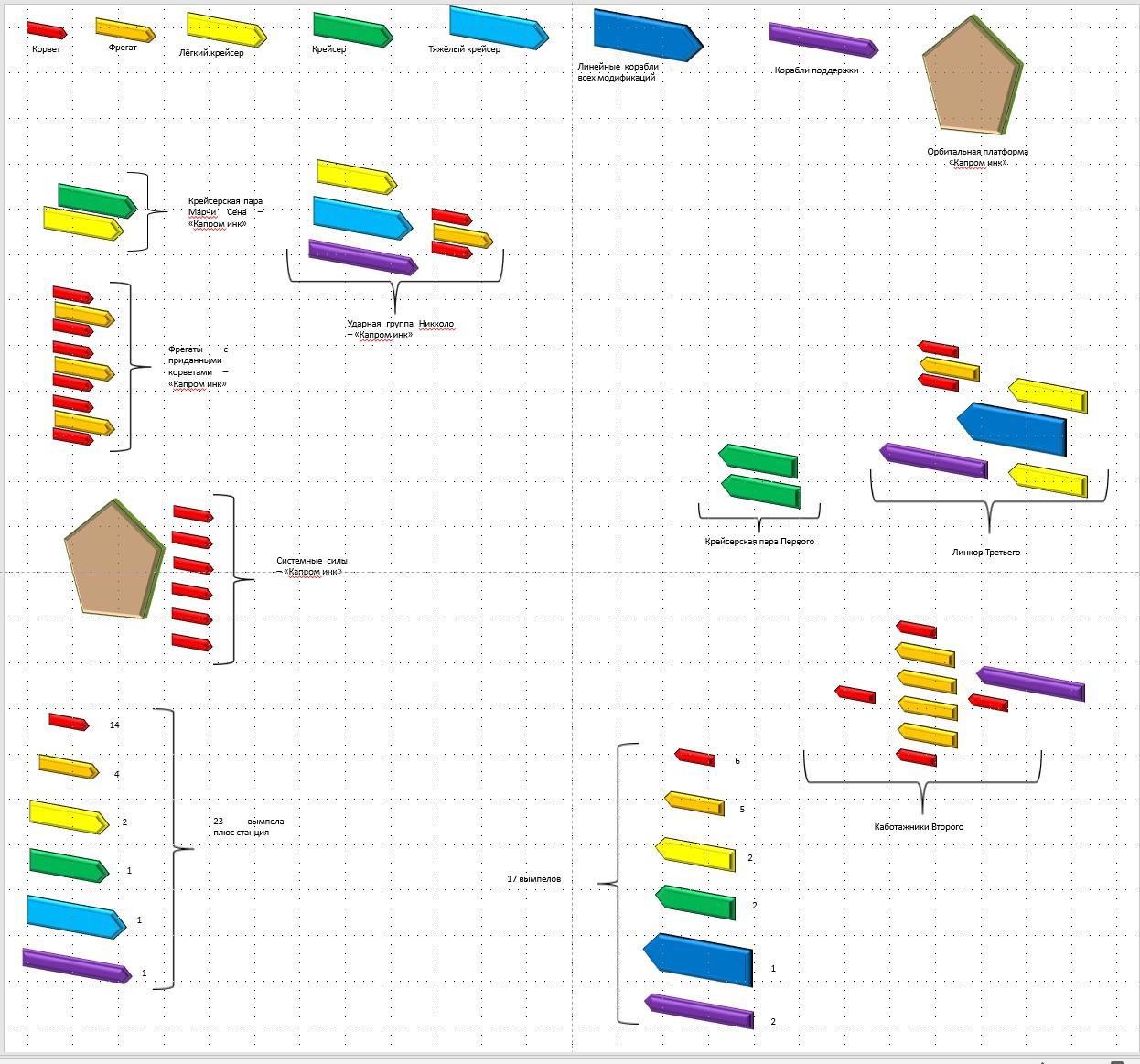 Автор: Максим АлиевВо второй книге о Каине я взял внешним конфликтом корпоративные разборки в удалённой звёздной системе, и для облегчения работы накидал вот такую схему с составом флотов)