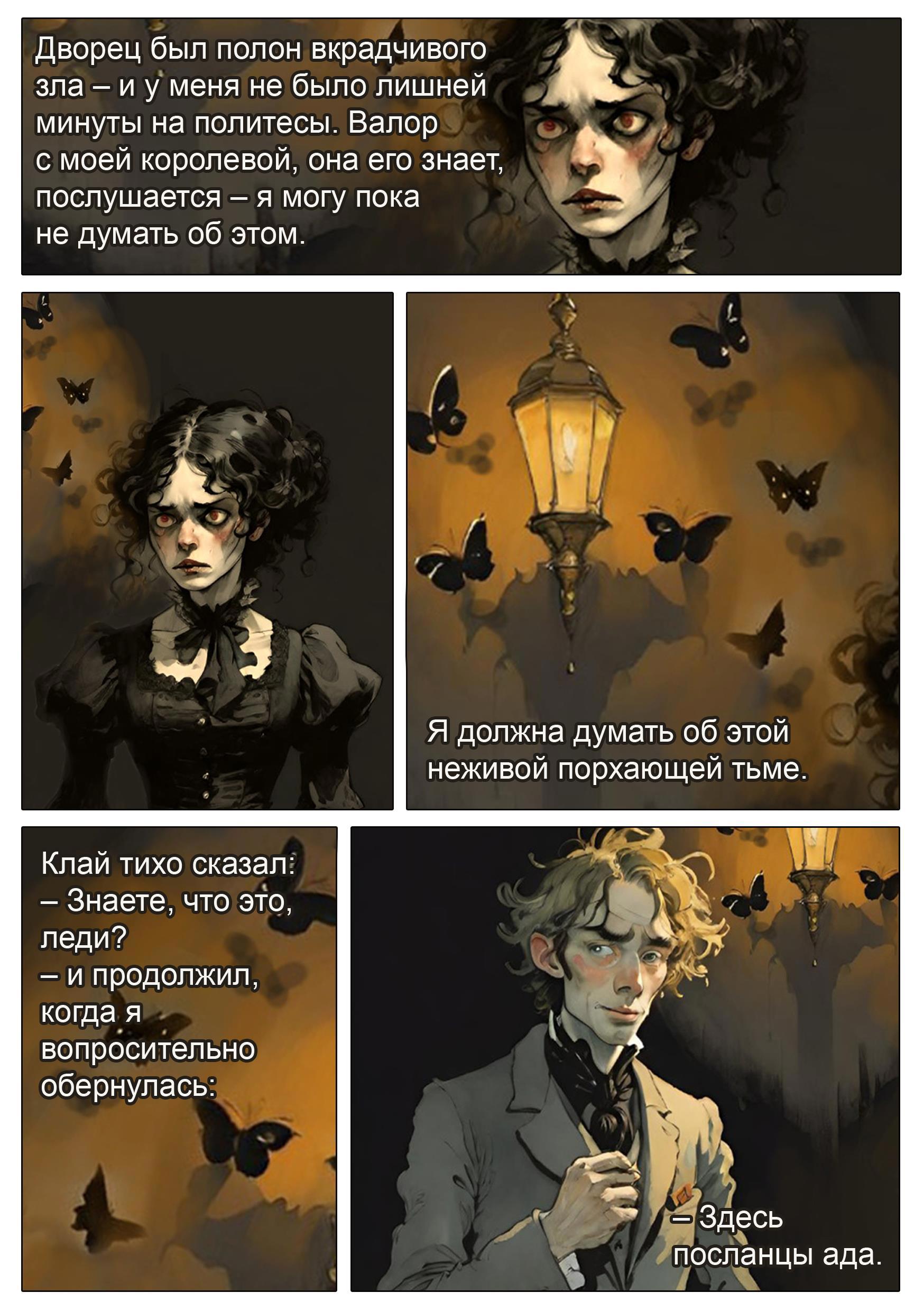 Что скажете? Нормально ли читается? Как вообще воспринимается такая штуковина? Какие ещё есть идеи по применению иллюстраций? *Да-да, о том, что из них можно собрать буктрейлер, я помню. Но о буктрейлере речь будет позже.