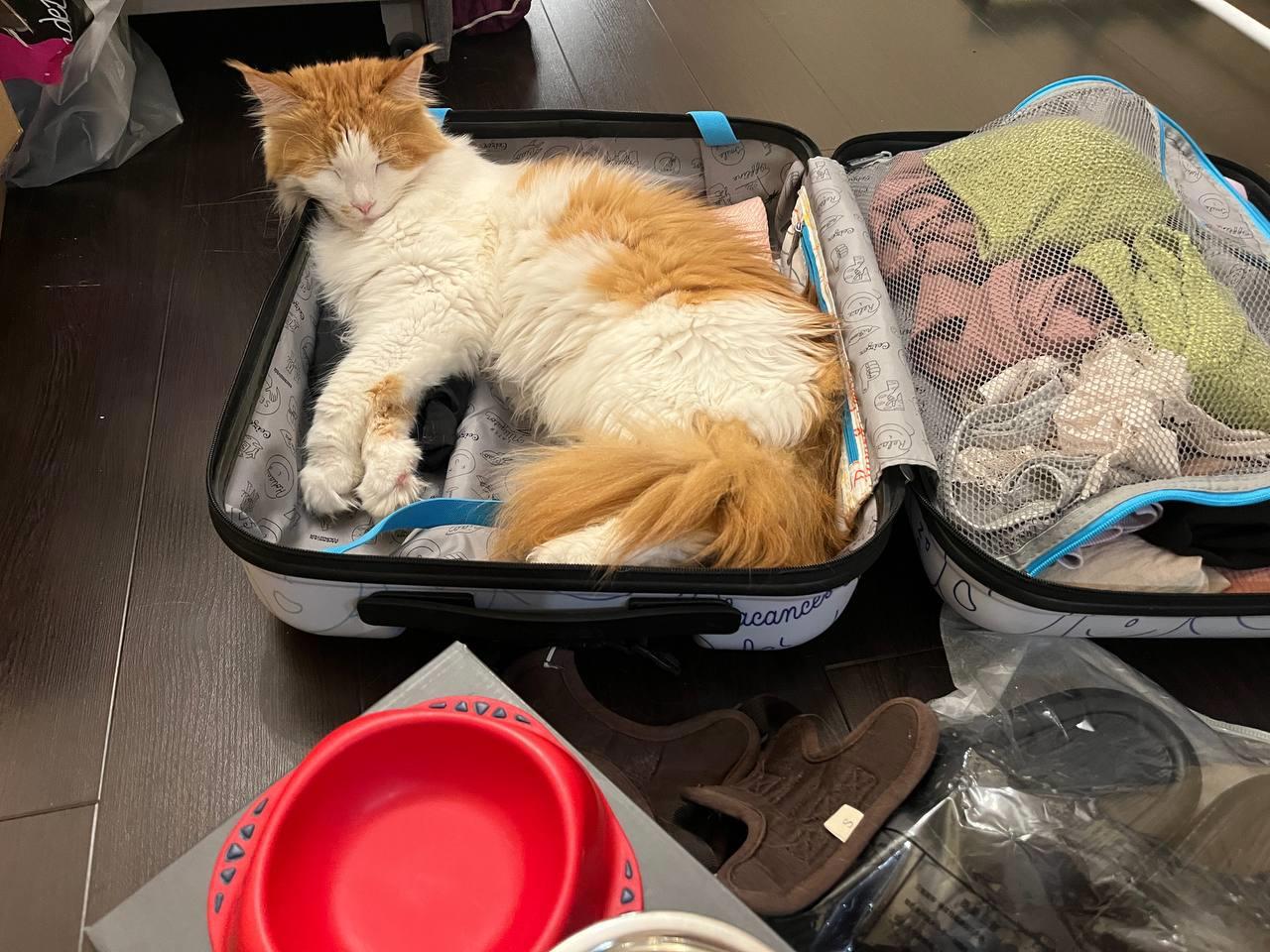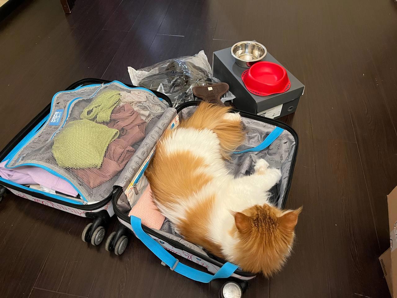 Пусть вас не пугает размер кошки относительно чемодана, он рассчитан всего на 10 кг.