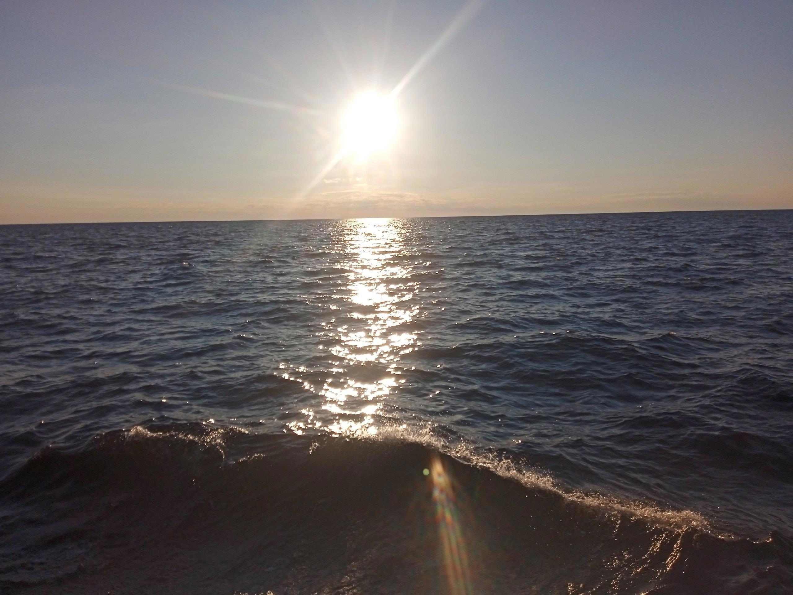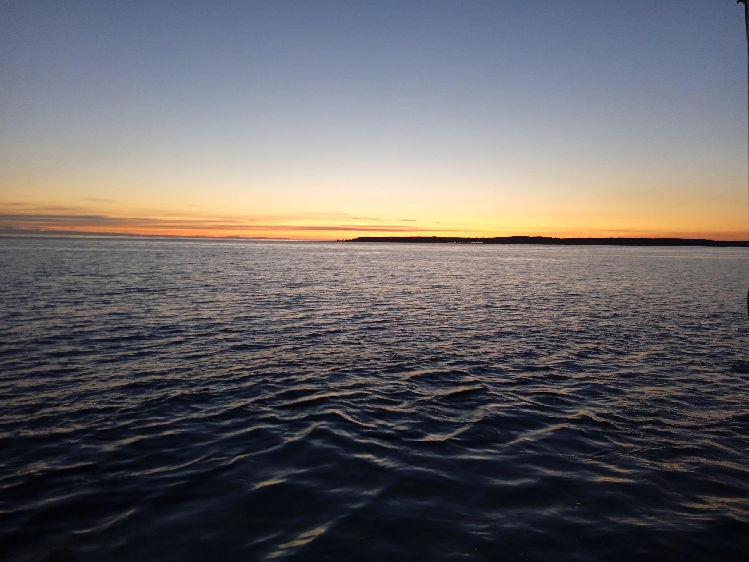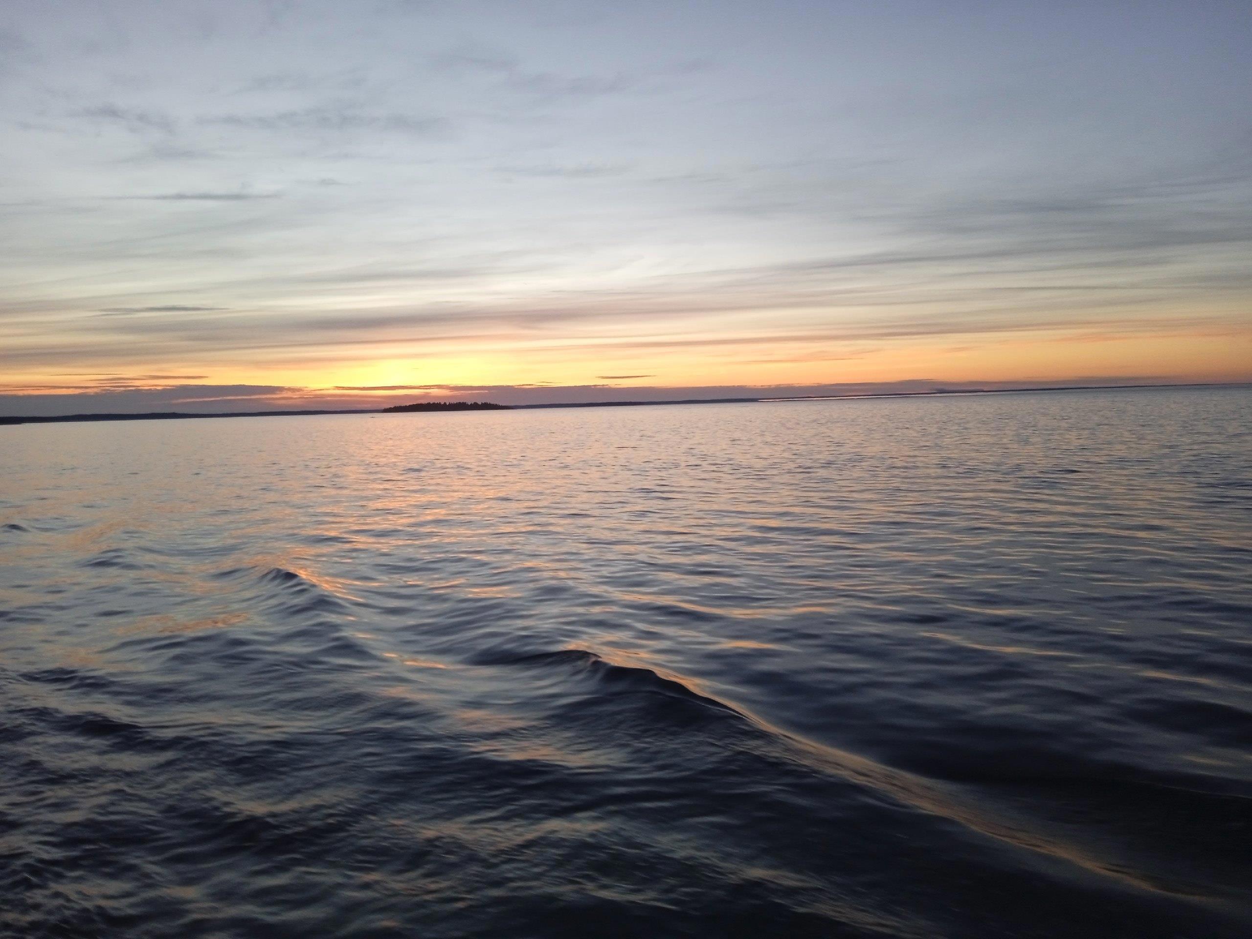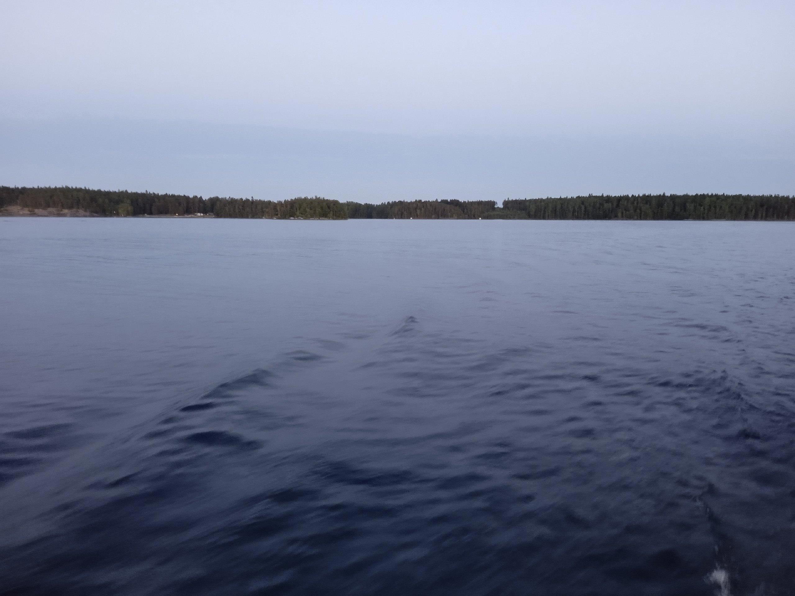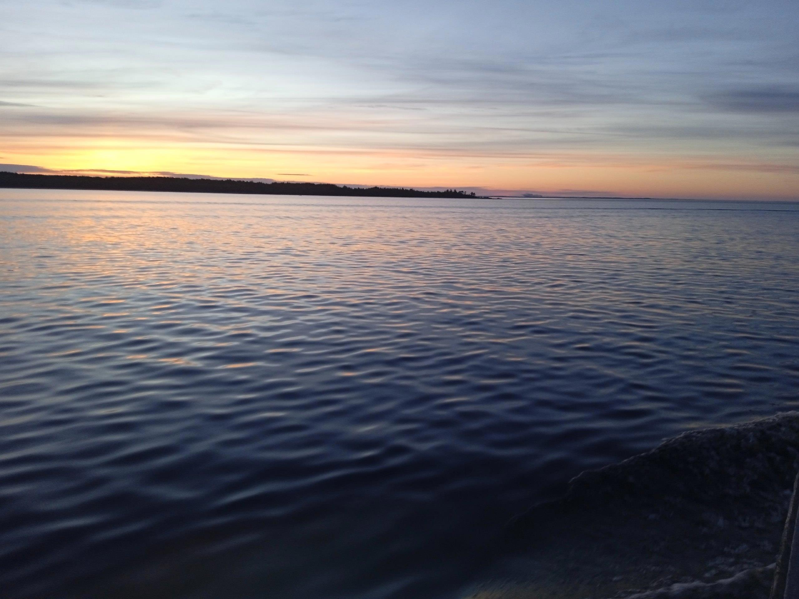 Это мы только вышли из нашего залива. Время 23.00, скоро полночь.