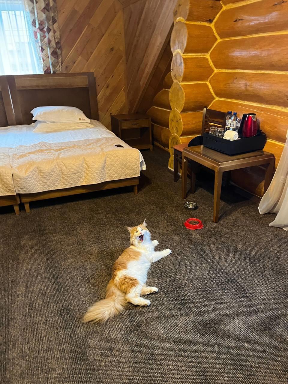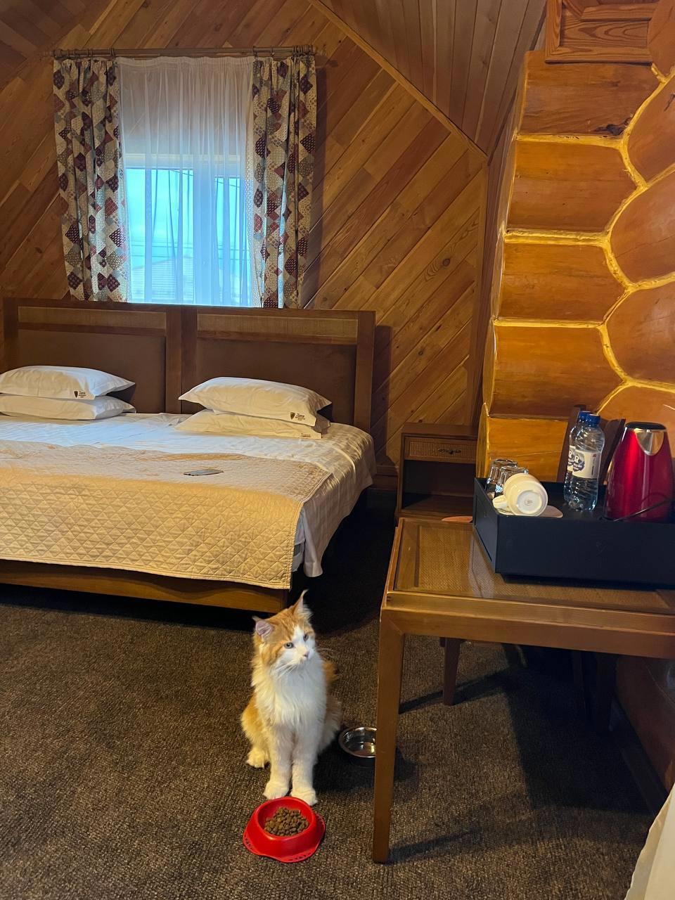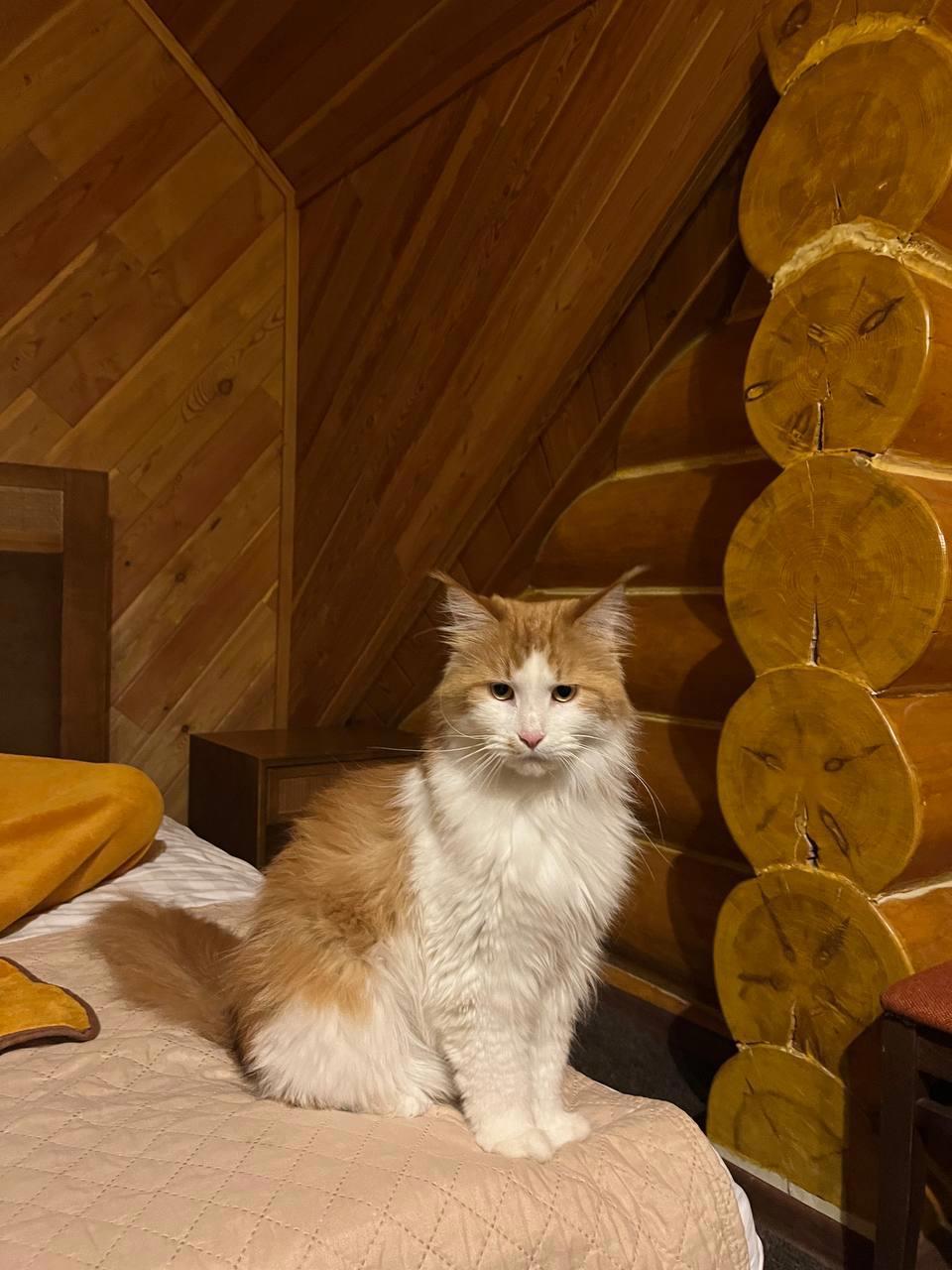 Один час и Кнопка в избе, которая сочетается с её шерстью по цвету.