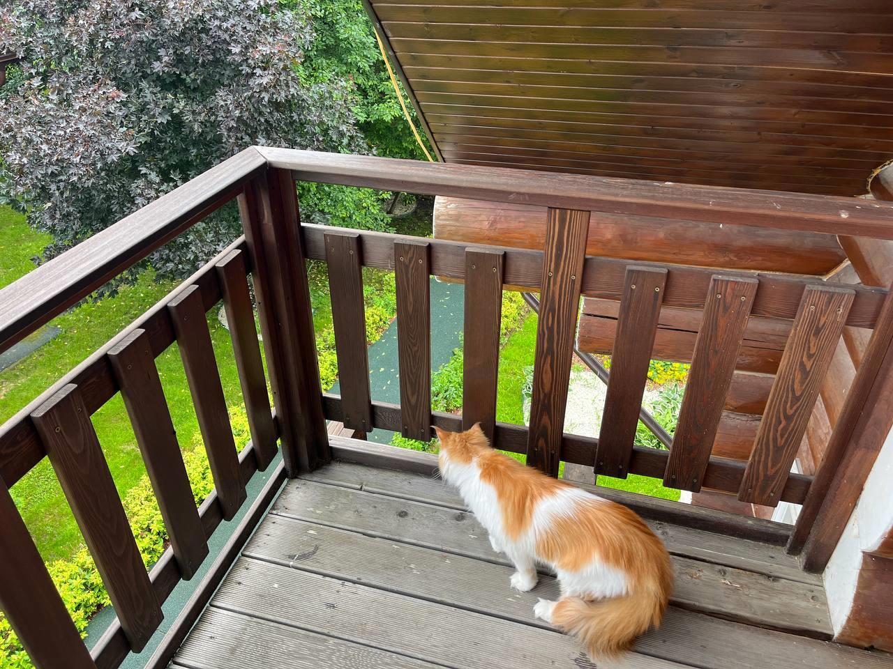 P.S. На балкон кошку насильно не выводим. Кнопка выходит сама, когда я открываю дверь. Думаю, сидеть в номере ей скучно, а балкон очень манящий и чарующий. При громких звуках или других опасностях, Кнопка забегает в номер. С балкона не прыгает и не пытается, видит, что высоко. В Батуми она провела 6 месяцев в квартире с открытым балконом, оставалась на нём без присмотра, три раза убегала в соседскую квартиру по карнизу, два раза падала во внутренний двор, один раз совершила неудачную попытку поймать голубя. В общем, вела активную, светскую жизнь.