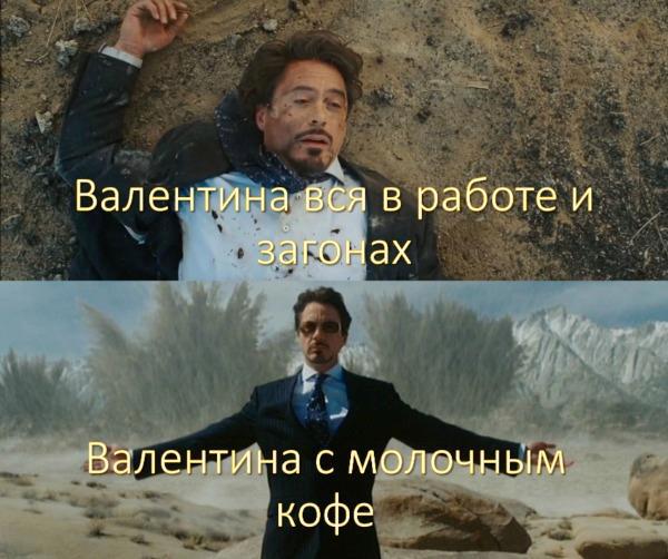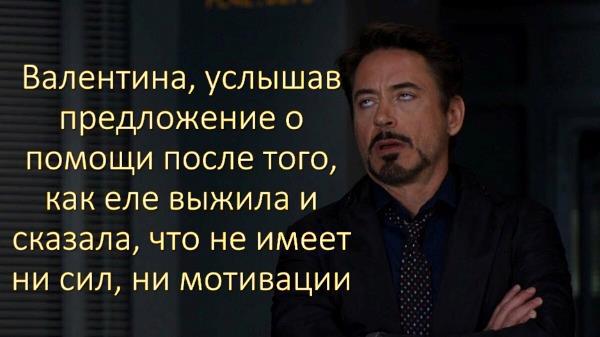 (Персонажи романа не обязательно обладают тем же набором качеств и характеристик, включая внешность и условную сторону "добра"/"зла", что и герои, изображенные на плашке мемов) (Валентина ≠ Железный Человек)