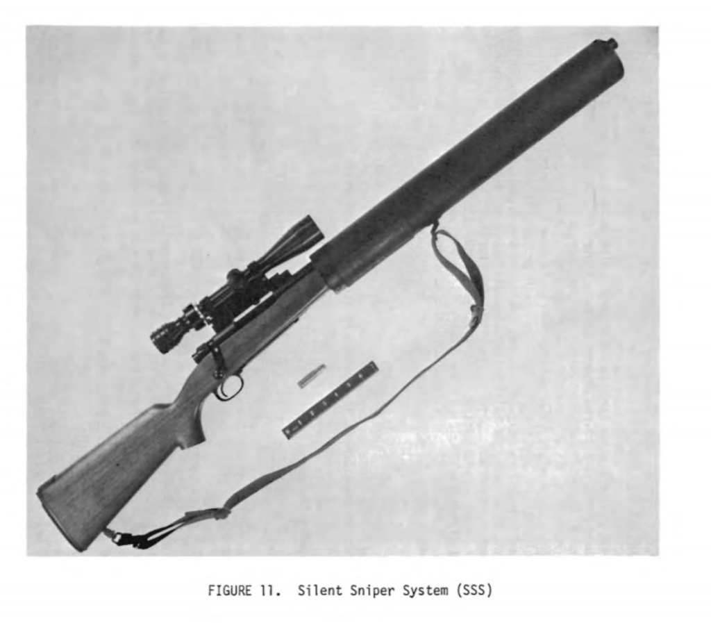 В чем-то схожие процессы идут и по другую сторону Атлантики. Например, еще во времена Вьетнама в США создали Silent Sniper Rifle -- бесшумную снайперскую винтовку на базе Winchester Model 70 под специально разработанный тяжелый дозвуковой патрон 458 x 1.5 Barnes. Винтовка успешно прошла испытания на Абердинском полигоне… и провалилась на реальном поле боя, во Вьетнаме. Снайпера на войне сочли, что это оружие слишком тяжелое и недостаточно точное для решения снайперских задач на нужных им дистанциях. Единственное с чем они согласились – винтовка была действительно очень тихая.