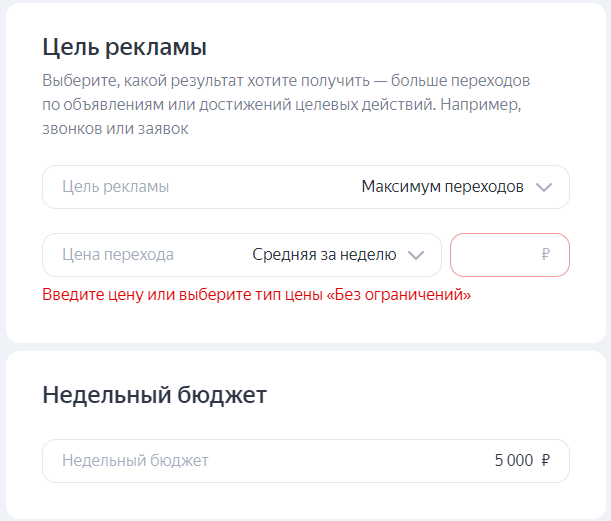1. Что делать с ценой клика? Ставить "Без ограничений"? Ставить какую-то конкретную цену? Как её придумать?